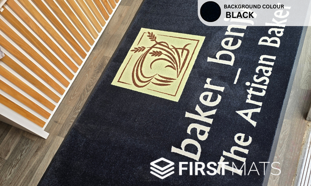 This custom logo mat for Baker Benjy – The Artisan Baker – adds a warm and professional welcome to the bakery. Showcasing the brand’s identity with handcrafted charm, it reflects the care and passion behind every loaf, while helping create a clean, inviting atmosphere for customers stepping inside.