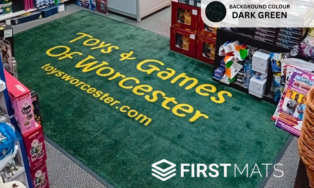 This custom logo mat for Toys & Games of Worcester adds a fun and friendly touch to the shop entrance. Featuring the store’s branding in bright, eye-catching detail, it sets a playful tone for customers of all ages while keeping the space clean, welcoming, and full of character.