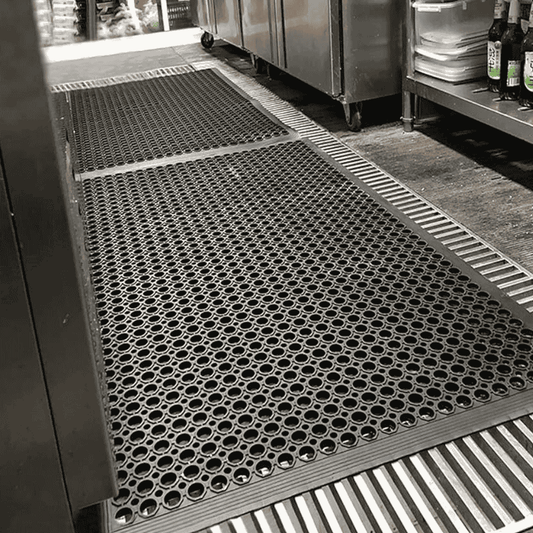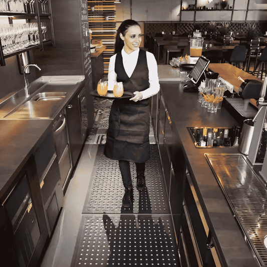 Our Bar Floor Mats are designed to keep hospitality staff safe, comfortable, and productive during busy service. Made from durable rubber with a drainage hole pattern, they prevent slips, cushion tired feet, and protect glassware from breakages. Available in individual or interlocking designs, they’re ideal for bars, pubs, restaurants, and any venue where drinks are served.