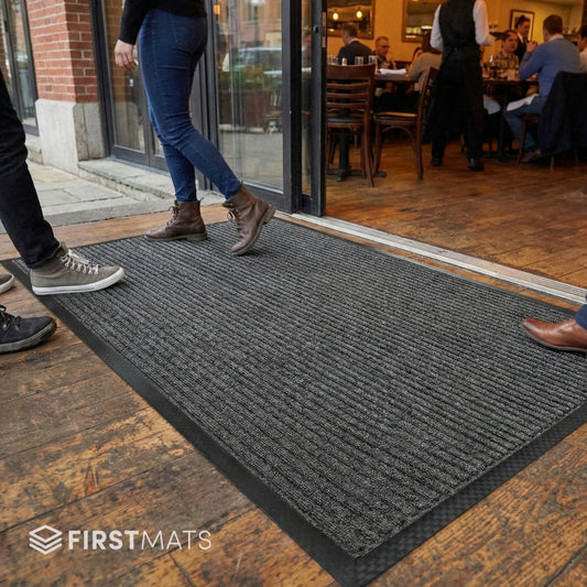 Restaurant mats help improve safety, cleanliness and comfort across every area of your venue, from the entrance to the bar and kitchen. This collection includes premium entrance mats, custom-branded logo mats and durable rubber mats with drainage holes, all designed to support a professional appearance while keeping staff and customers safe.