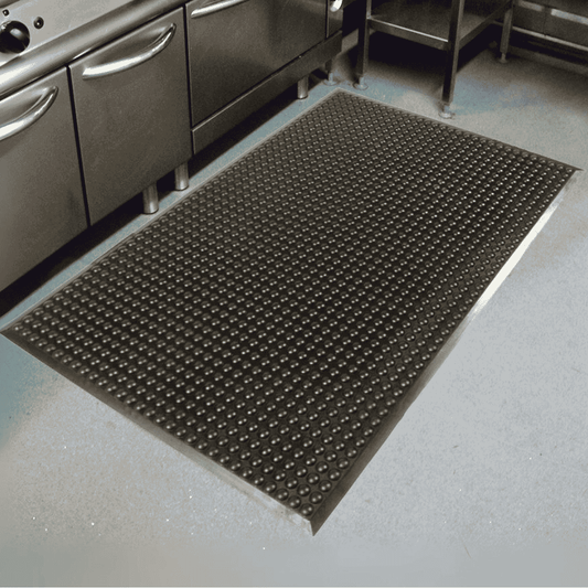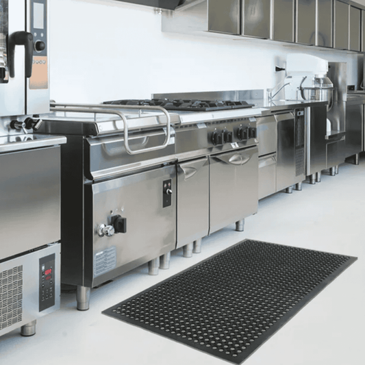 Explore our Rubber Kitchen & Catering Mats collection, designed to enhance safety, hygiene, and comfort in busy food preparation spaces. With oil- and grease-resistant materials, anti-slip textures, and anti-fatigue benefits, these mats ensure a secure and efficient environment for staff. Perfect for commercial kitchens, bars, and food facilities, they combine durability, practicality, and easy maintenance for any professional catering setup.