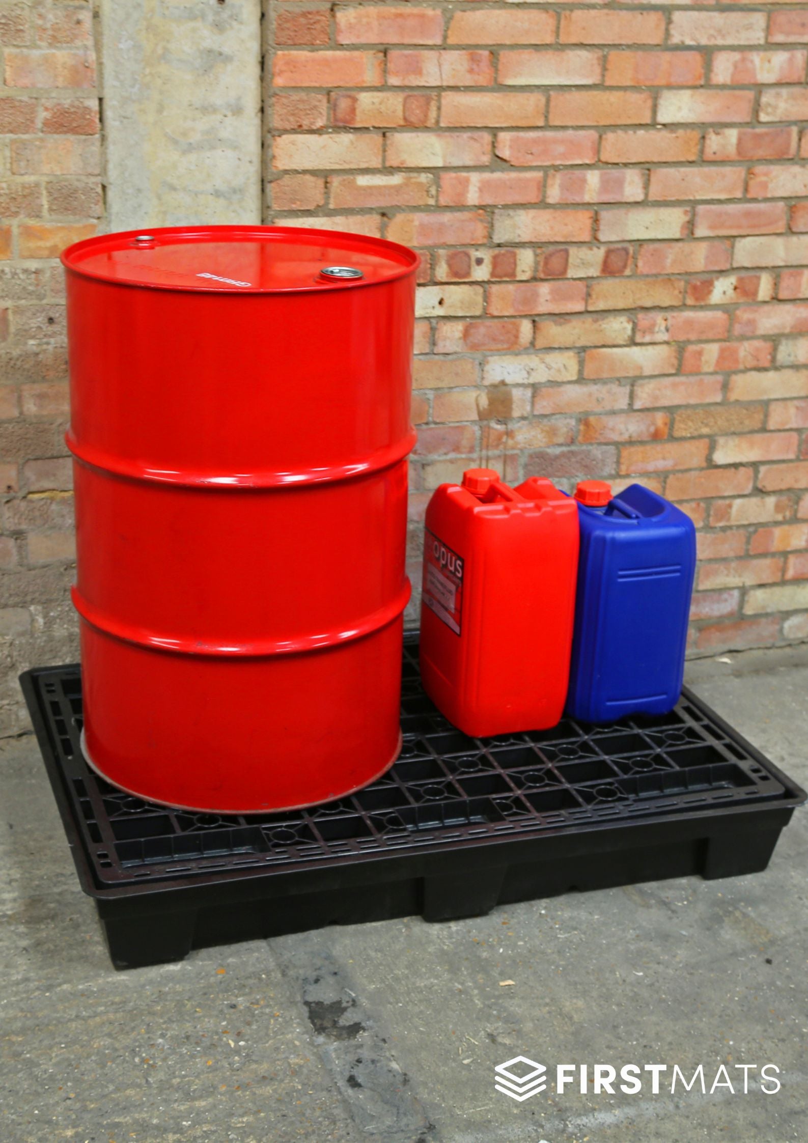 - Dimensions: Measuring 1270(L) x 870(W) x 160(H) mm, this spill containment pallet is compact enough for easy storage and navigation, yet spacious enough to accommodate two 205Ltr drums.