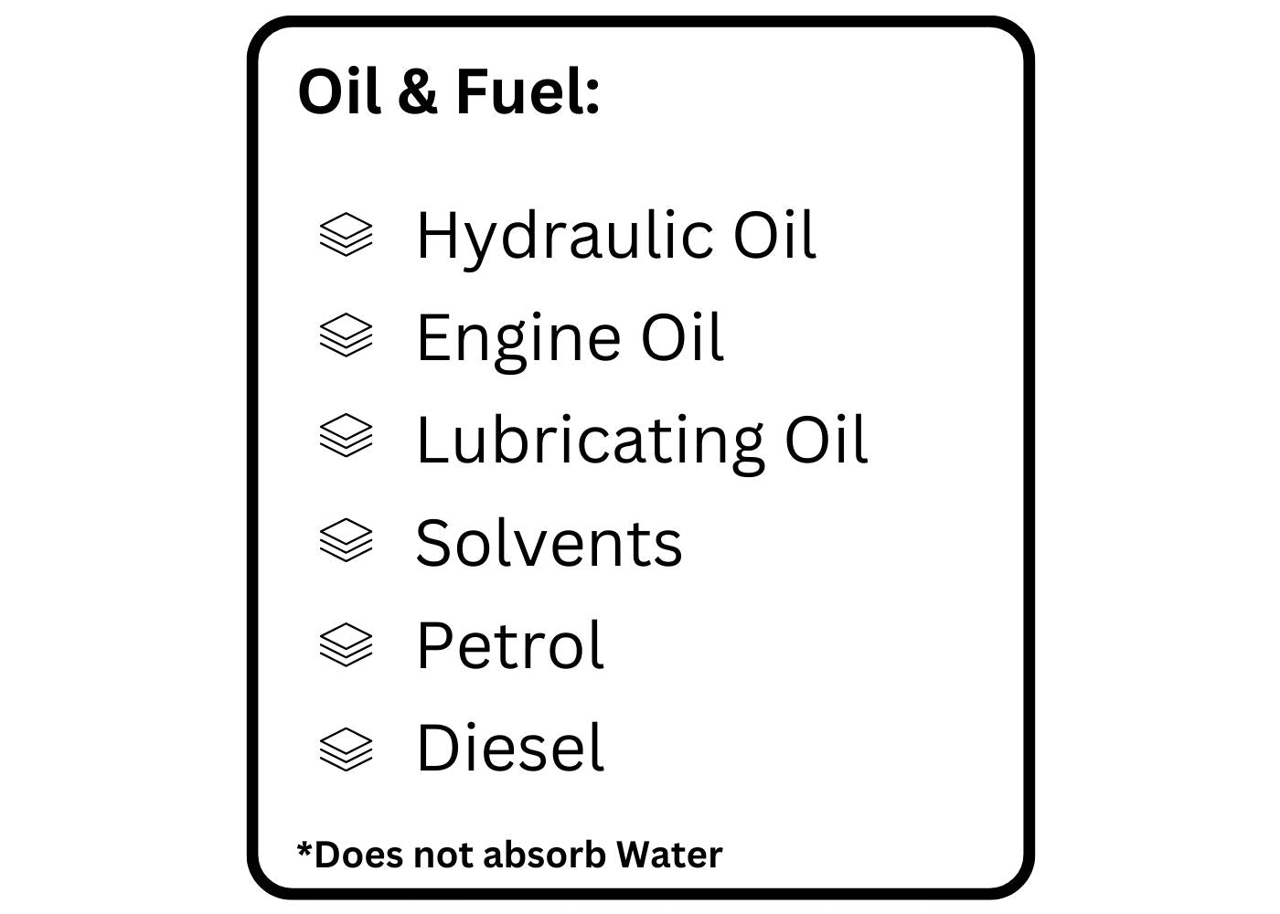 - Designed for oil and fuel spills only