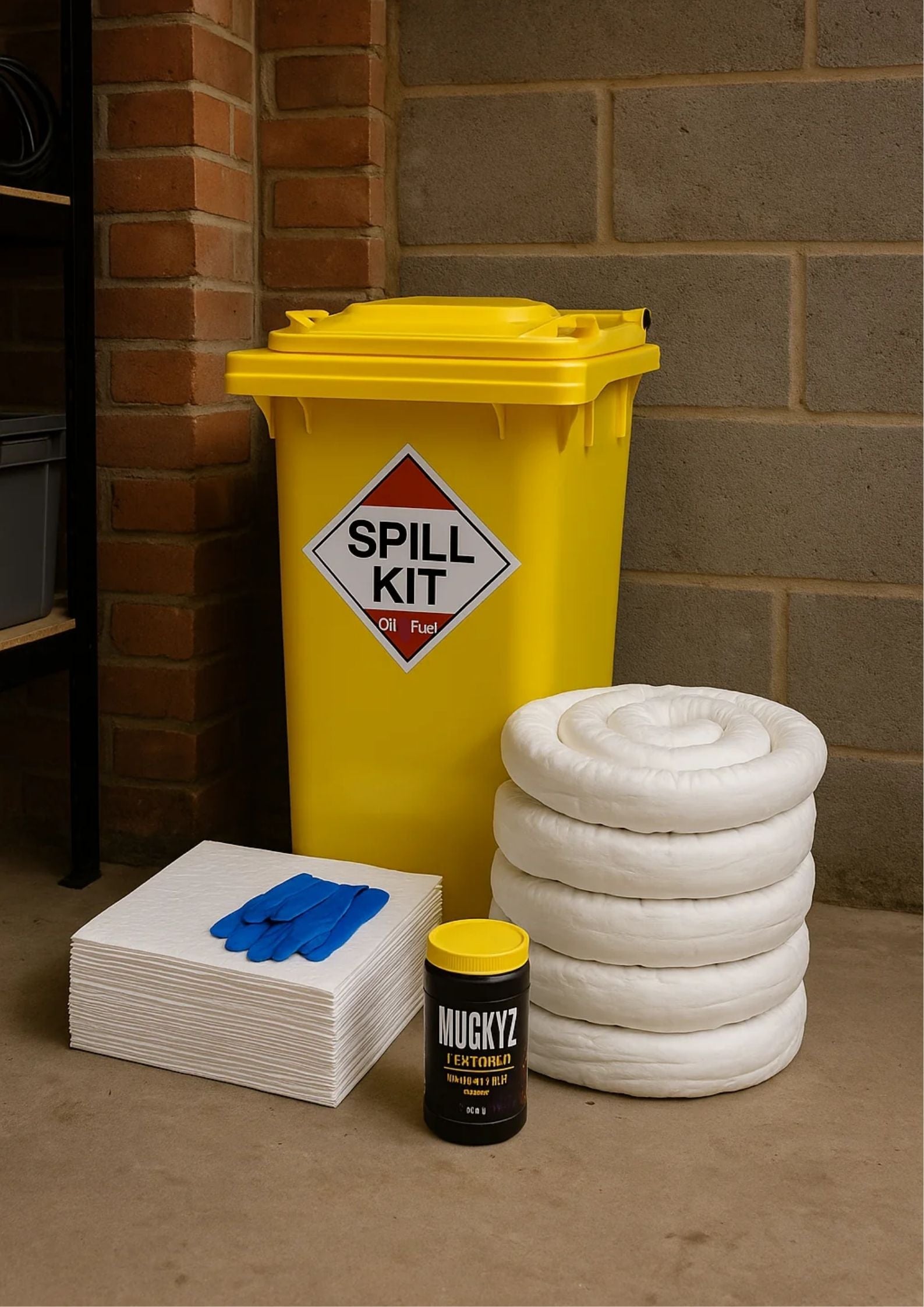 Comprehensive Kit: Includes absorbent pads, socks, disposal bags, and Muckyz wipes for a complete spill response solution.