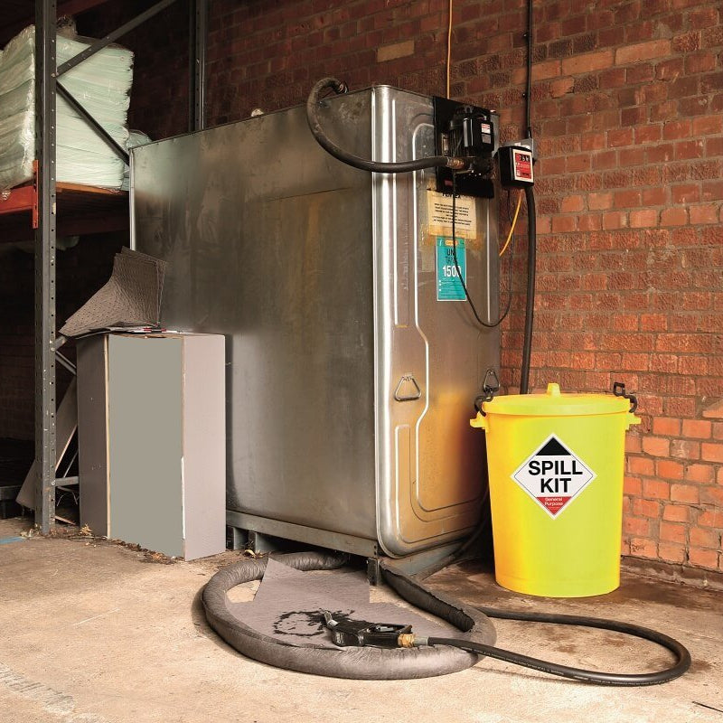 - Portable Spill Control: Stored in a wheeled bin for easy transport and accessibility.