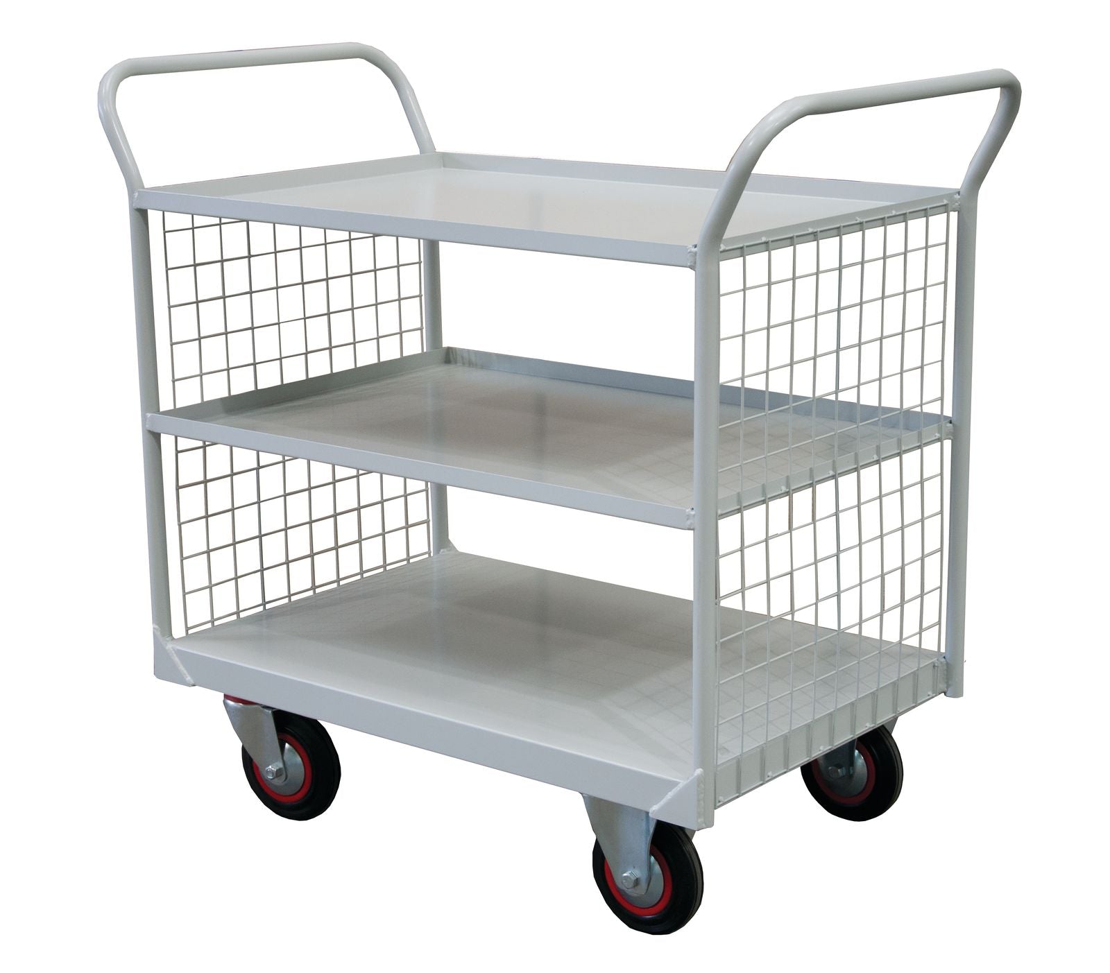 A premium-quality three-tier trolley with mesh sides for enhanced load security.