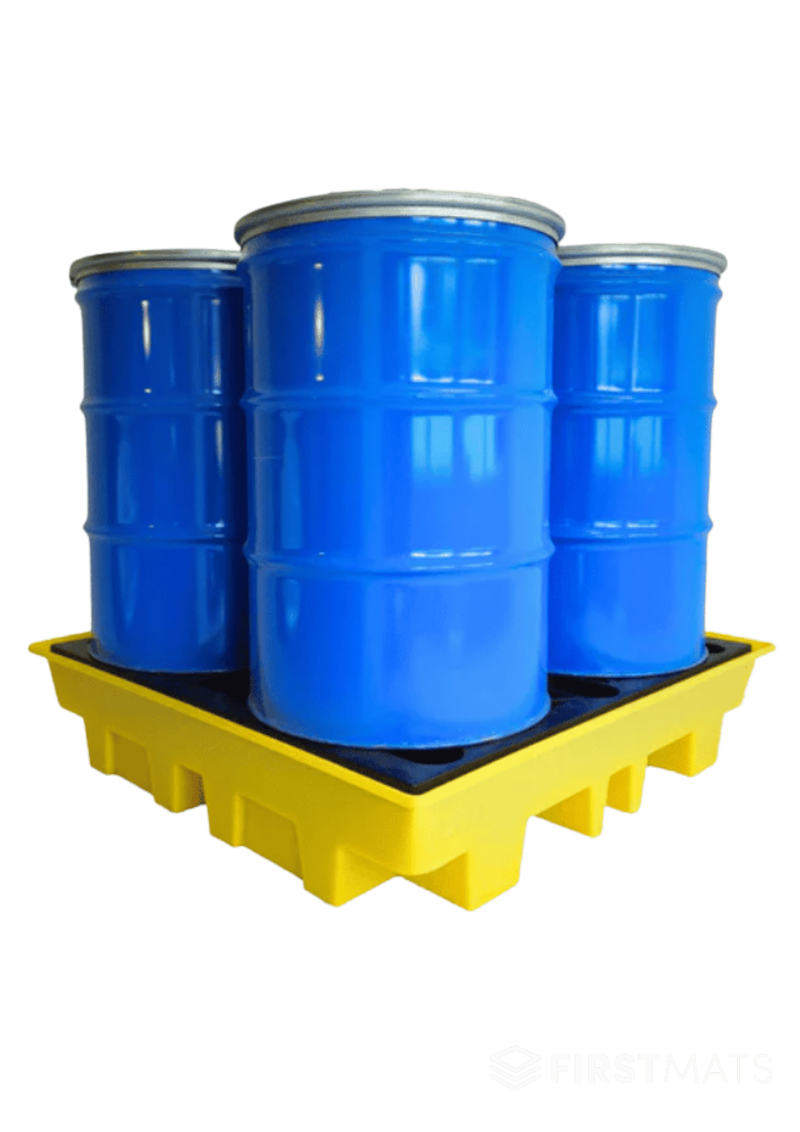 4-Drum Spill Pallet: Robust, Low-Profile & High Capacity
