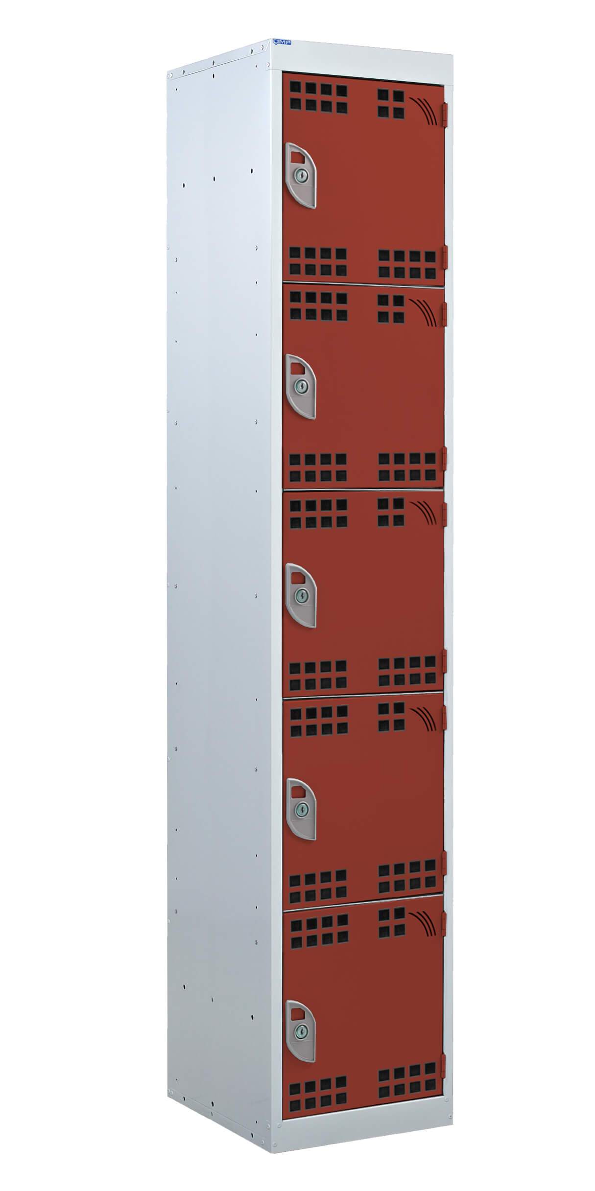 Experience the convenience and security of our 5 Compartment Tool Charging Locker. Designed for durability and safety, this locker provides a robust storage and charging space for multiple power tools or battery packs. Its perforated doors ensure cooling while the standard plug sockets in each compartment facilitate easy charging. Available in a variety of colours, this locker is not only functional but also aesthetically pleasing.