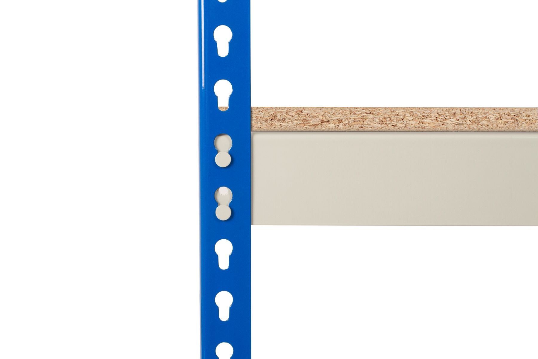 - Sturdy, double-riveted chipboard shelves