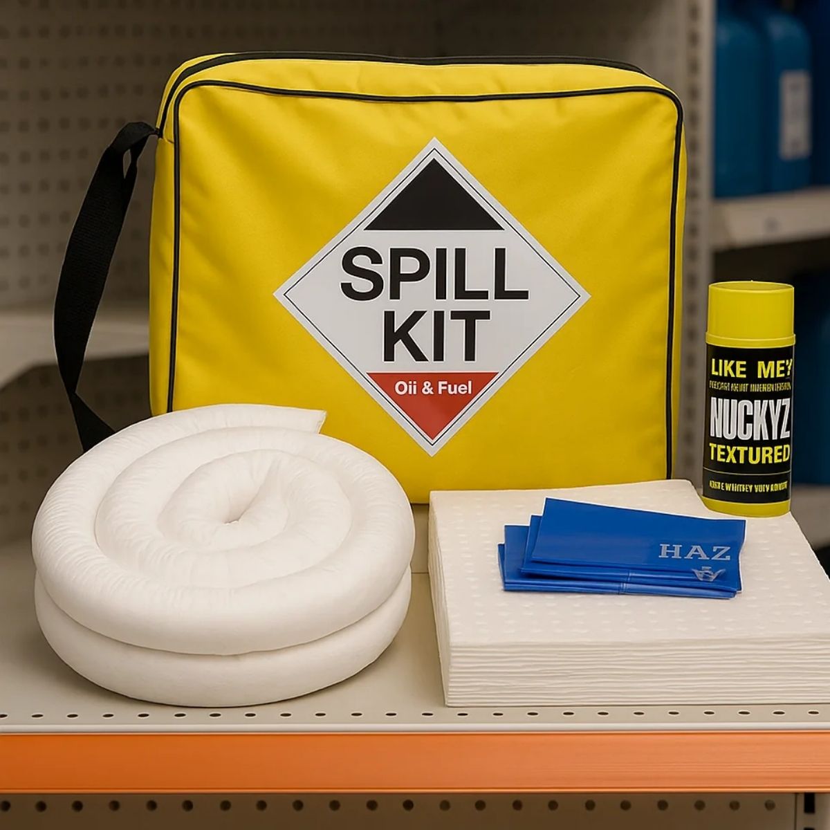 - Includes absorbent pads and socks designed for oils, fuels, and hydrocarbons