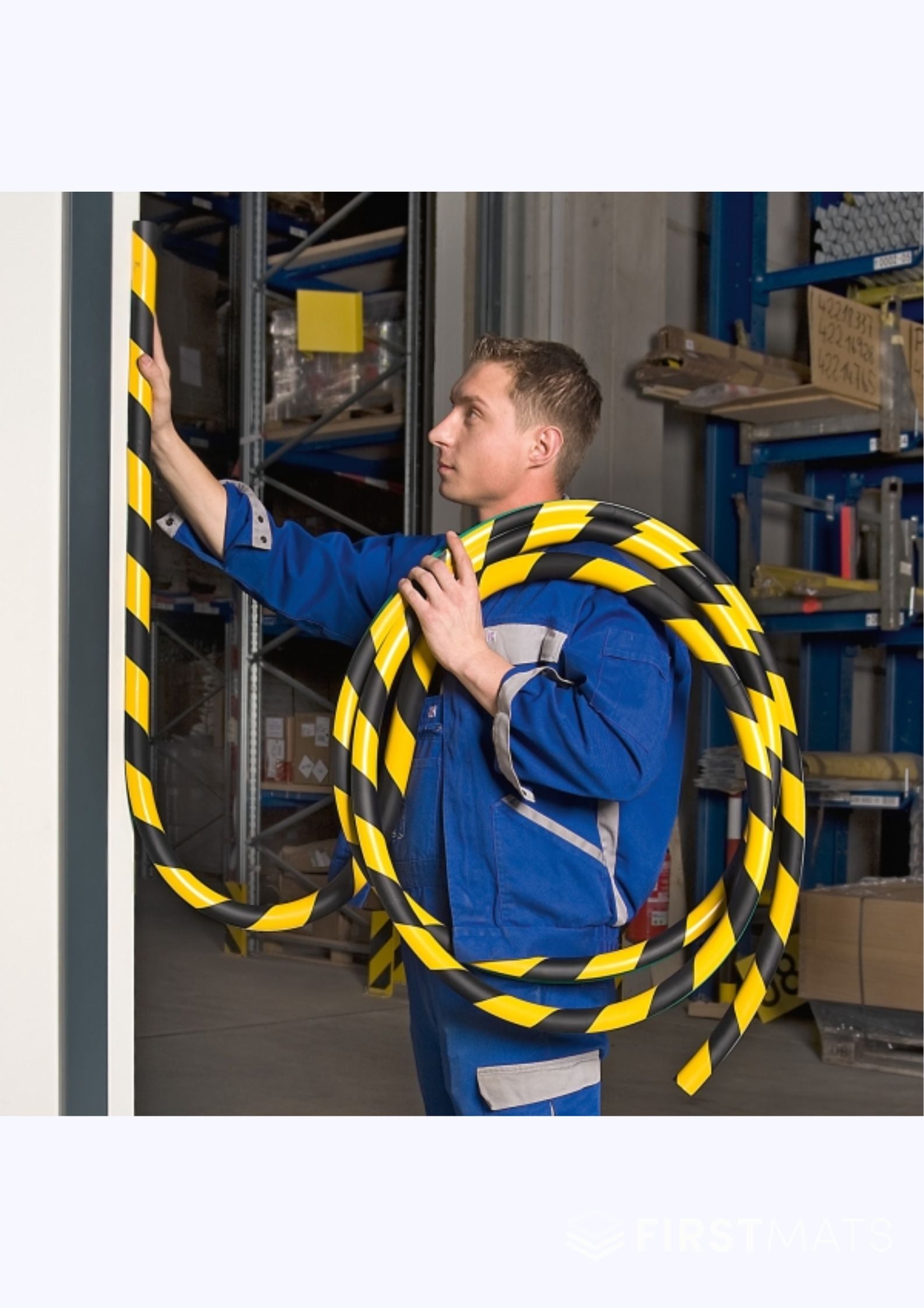 Available in semi-circular and rectangular profiles, the thick foam cushions accidental knocks and scrapes, while the black-and-yellow hazard stripes provide a clear visual warning. Installation is simple, just push the strip into place on a smooth, clean surface. The reusable design means it can be removed and refitted multiple times, making it a cost-effective and flexible option for industrial environments.