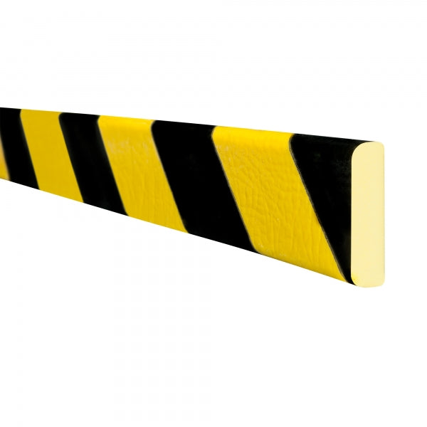 Our Self-Adhesive Foam Surface Protector Strips – 5m Roll are available in semi-circular (40mm x 32mm) and rectangular (50mm x 20mm or 40mm x 11mm) profiles. Designed for permanent installation, the 5m continuous length ensures coverage over larger areas while reducing joins. With their yellow-and-black hazard stripes, they are easy to spot, while their polyurethane foam construction provides strong resistance to UV, fire, solvents, and extreme temperatures.