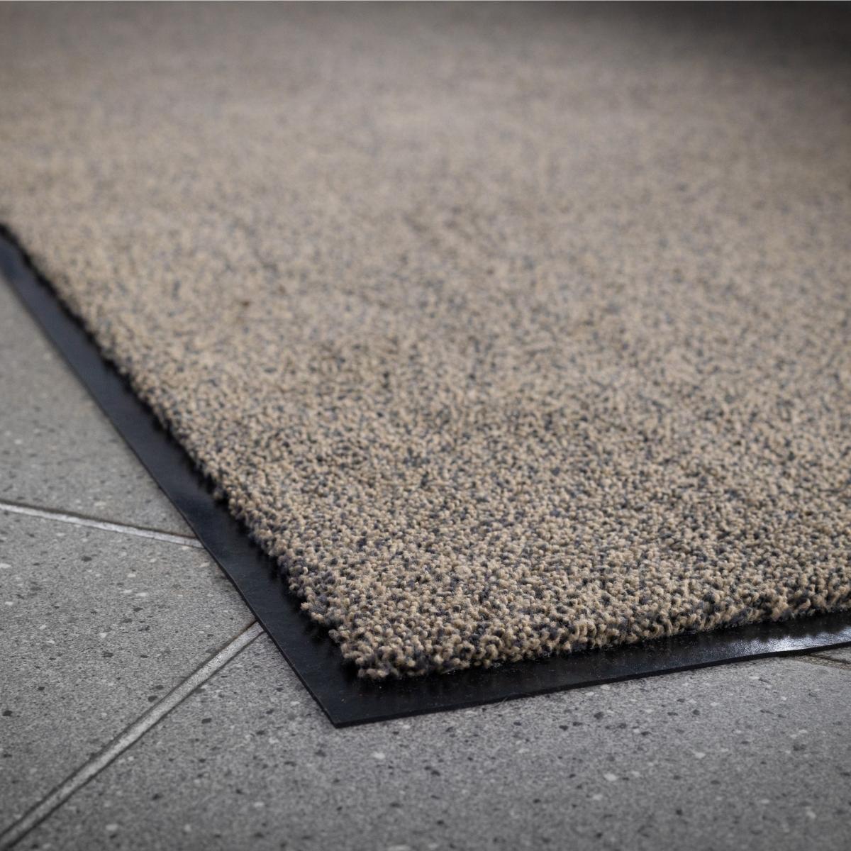 Constructed from high-tuft cut-pile fibres, this 8.5mm-thick mat absorbs up to 2.4 litres of water per square metre. The bevelled anti-trip border and non-slip rubber backing improve safety in busy areas. Made from 30% recycled materials and PVC-free. Machine washable at 30°C.