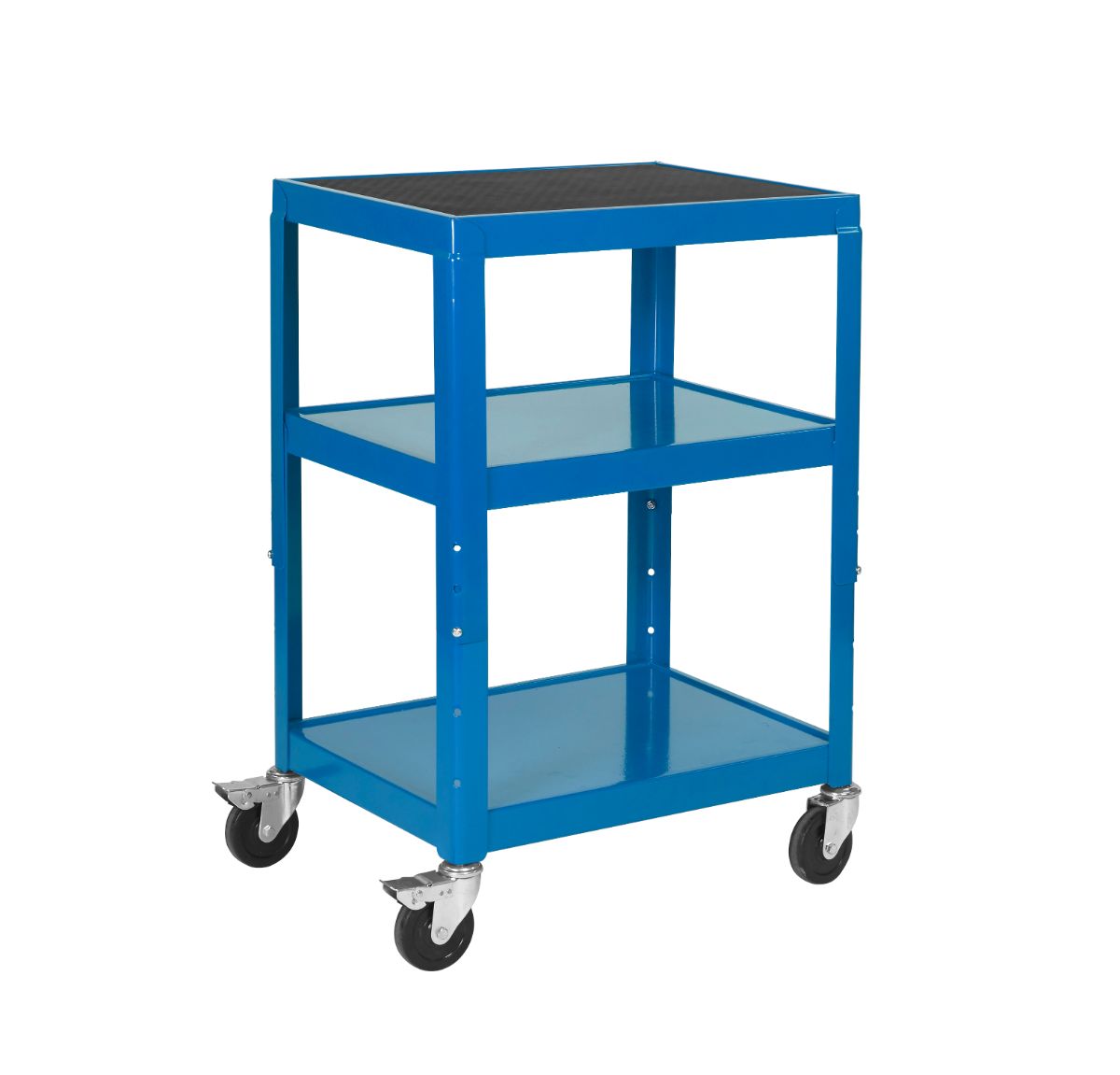Each trolley is manufactured from 20 gauge steel with smooth rounded edges and sturdy 14 gauge steel legs. The height can be easily adjusted from 660mm to 1070mm in 100mm increments, making it a fantastic option in areas where space is at a premium. The trolley also features four 100mm swivel castors, two of which are braked, for easy manoeuvrability. A ribbed rubber mat is included for added stability of items. Available in red, blue and grey, this trolley is not only functional but also aesthetically pleasing. Enjoy free 3-day UK mainland delivery when you order.