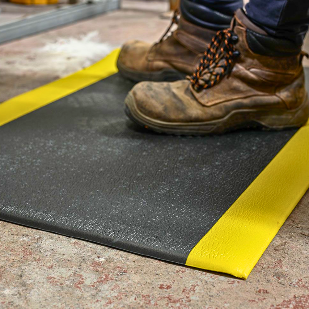 Now, you can tailor the mat to your preference with a choice of three surface textures - Pebble, Ribbed, or Diamond pattern - offering more options to suit different workplaces. Each texture performs equally well, so your choice comes down to personal style. You can also choose between Black or Grey mats, with the optional yellow safety borders helping to reduce trip accidents and mark safe walkways.