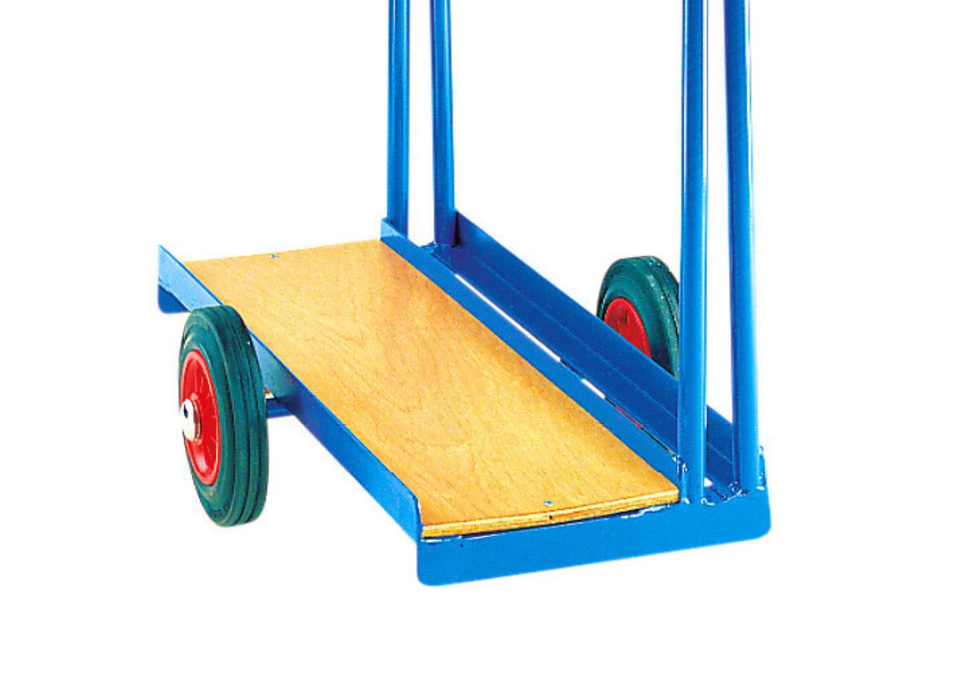 This balance trolley also features two axle-mounted solid rubber or pneumatic tyred wheels. The tubular steel frame is finished in blue epoxy with a durable plywood platform.