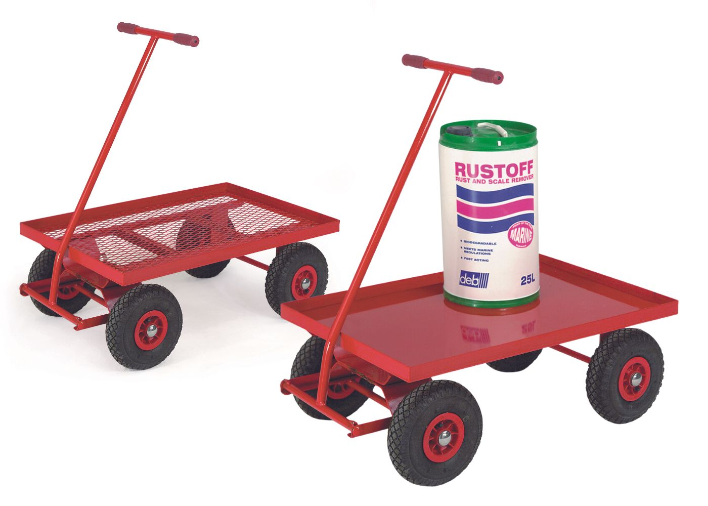 You can choose between a steel sheet or steel mesh base depending on your specific needs. Equipped with 250mm pneumatic rubber wheels, these trucks excel on uneven ground, ensuring smooth operation and manoeuvrability.