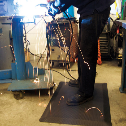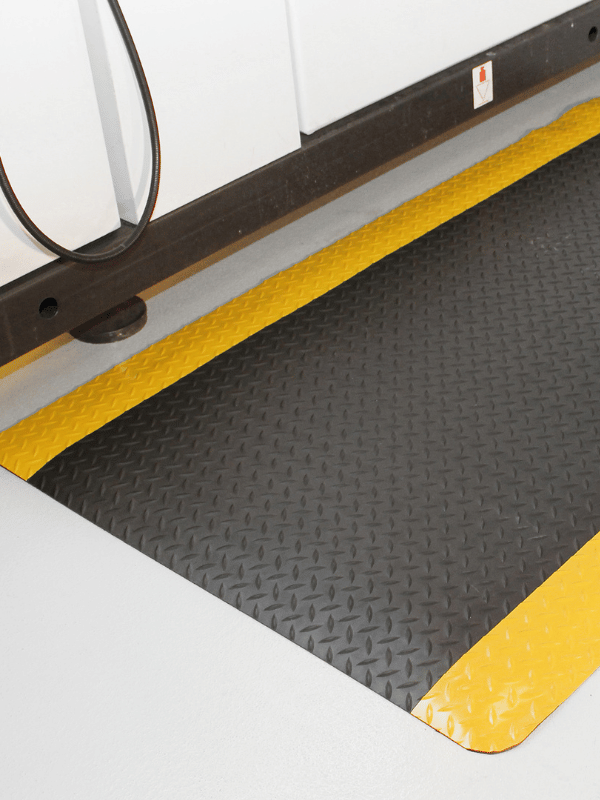 Durable anti-fatigue matting with a hard-wearing vinyl surface for high-traffic industrial areas.