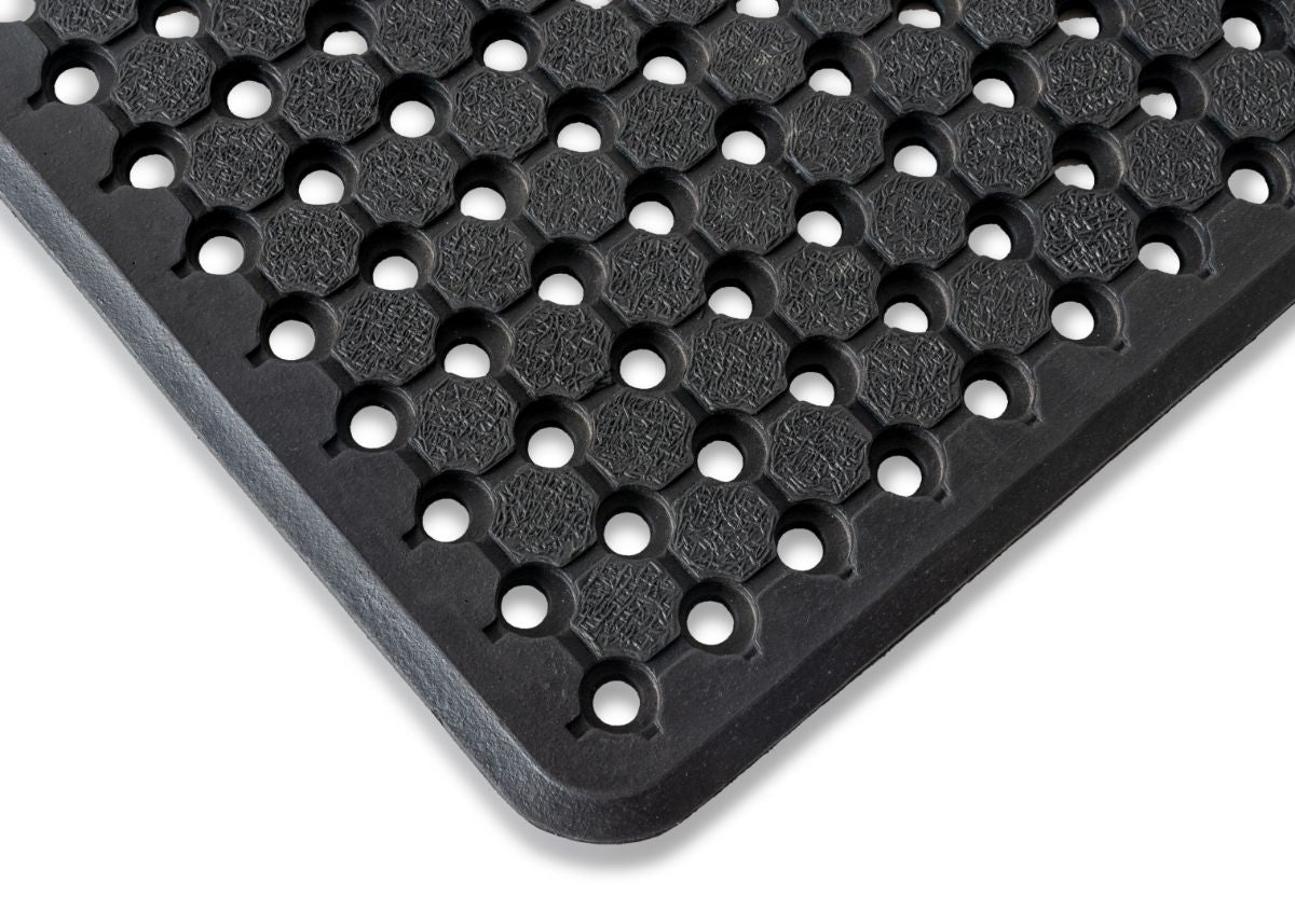 Durable rubber matting designed to improve safety, comfort, and water drainage in both indoor and outdoor environments.