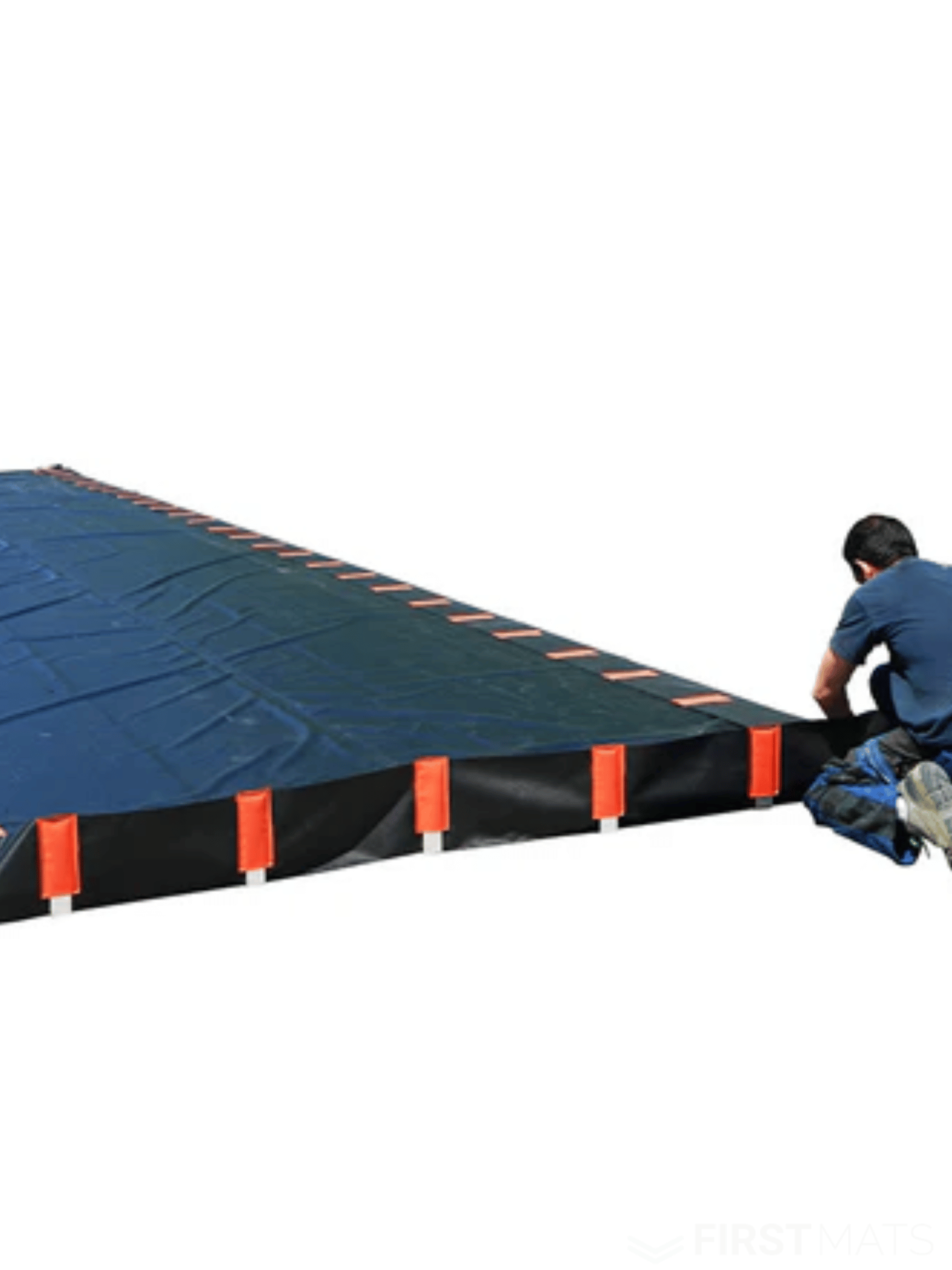 Demonstrating how to assemble a Portable Spill Containment Bund from First Mats