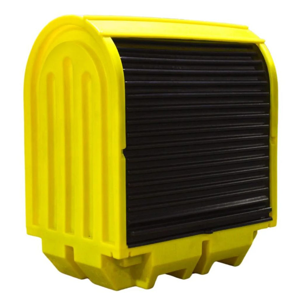 Covered spill pallets are one of the best ways to prevent potential spills and leaks outdoors. Manufactured from medium density polyethylene, this covered spill pallet is no exception. It offers a sump capacity of 230 litres and comes complete with a removable plastic grid and a hard cover with a roller shutter door fitted with a central lock for easy opening and closing.