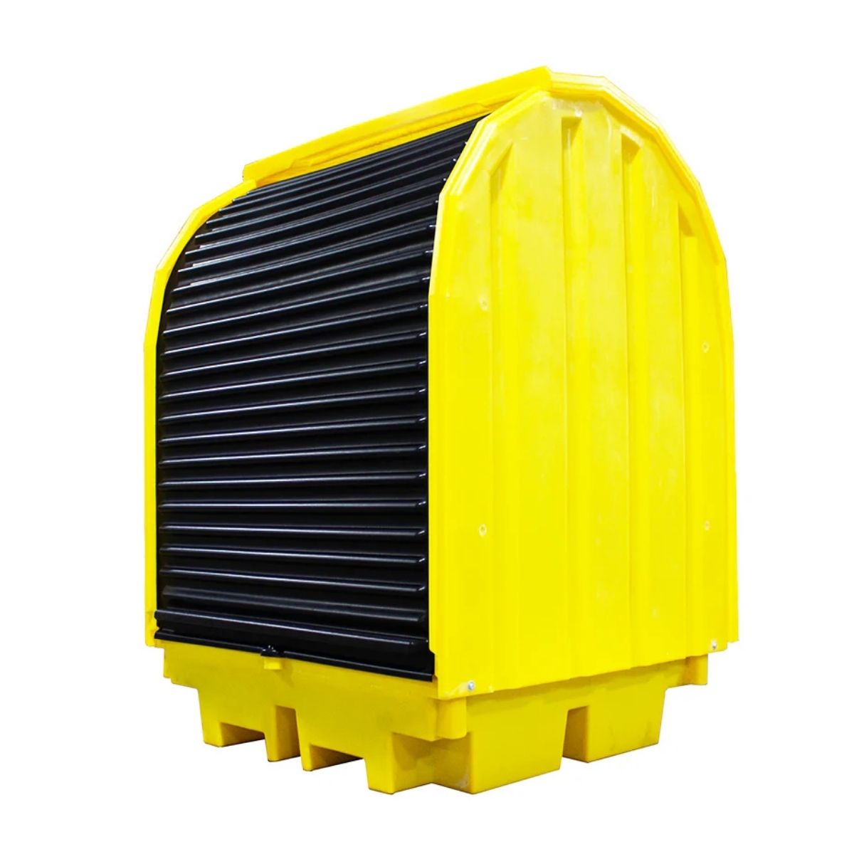 Designed for outdoor storage, this covered spill pallet protects against spills, leaks, and unauthorised access.