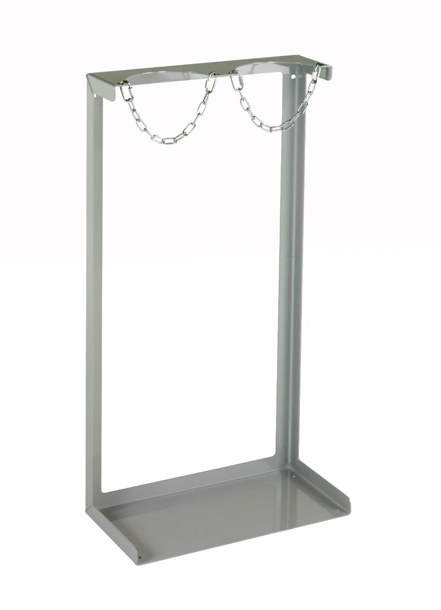 The Economy Gas Cylinder Floor Stands are designed with your safety in mind. They ensure that gas cylinders are kept upright with the valves on top, in accordance with HSE guidance on storing gas cylinders. Each stand is fitted with zinc-plated steel link retention chains to secure each gas cylinder. Manufactured from 3mm sheet steel, these stands are robust and durable. The pre-drilled base allows for easy fixing to the floor and wall, providing extra stability. The stands can also be bolted back to back to create double-sided storage areas. With an overall height of 1,005mm, the stands weigh 7kg for the one-cylinder option and 10kg for the two-cylinder option. They are manufactured in the UK and finished with a light grey epoxy for extra durability. Delivery is free within mainland UK, within 7 working days.