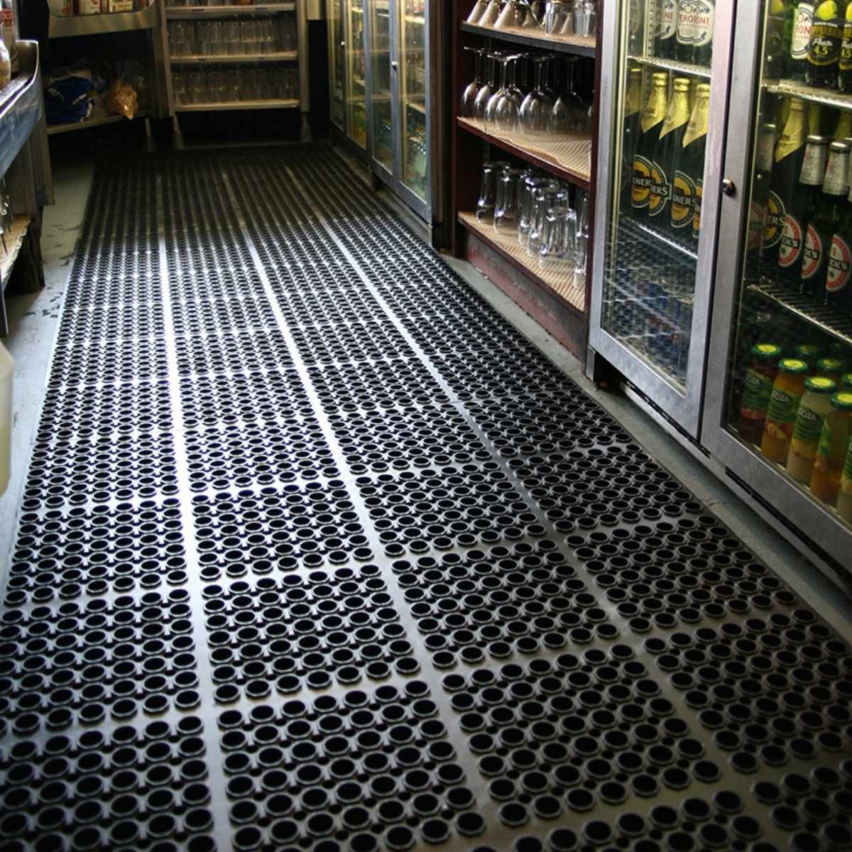 A modular bar mat designed to protect staff and keep service areas safe.