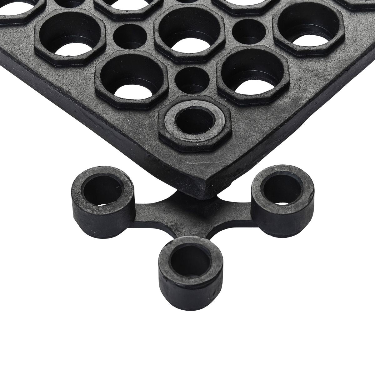 Manufactured from durable natural rubber, these mats feature a 19mm-thick cushioned profile for maximum comfort and slip resistance. The modular design can be used individually or linked with optional connectors and bevelled edges to suit larger bar layouts. The open-hole ring pattern enables rapid drainage of liquids, making them perfect for wet hospitality environments.
