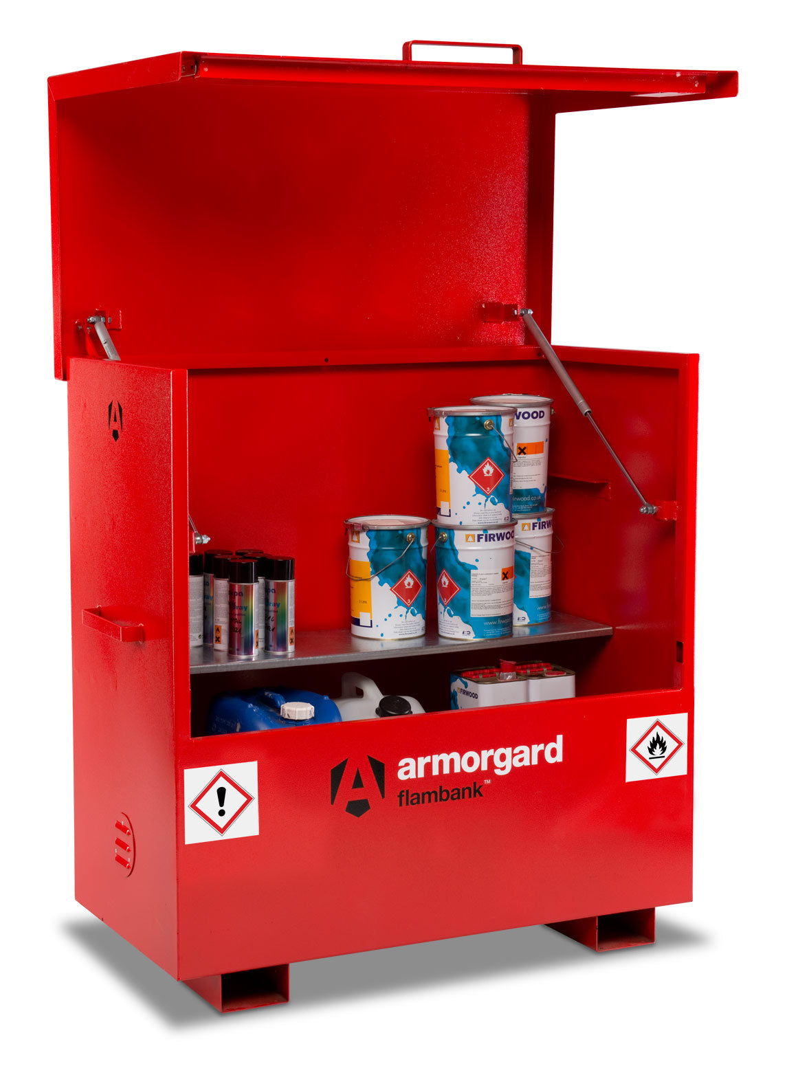 - COSHH-compliant storage for flammable liquids