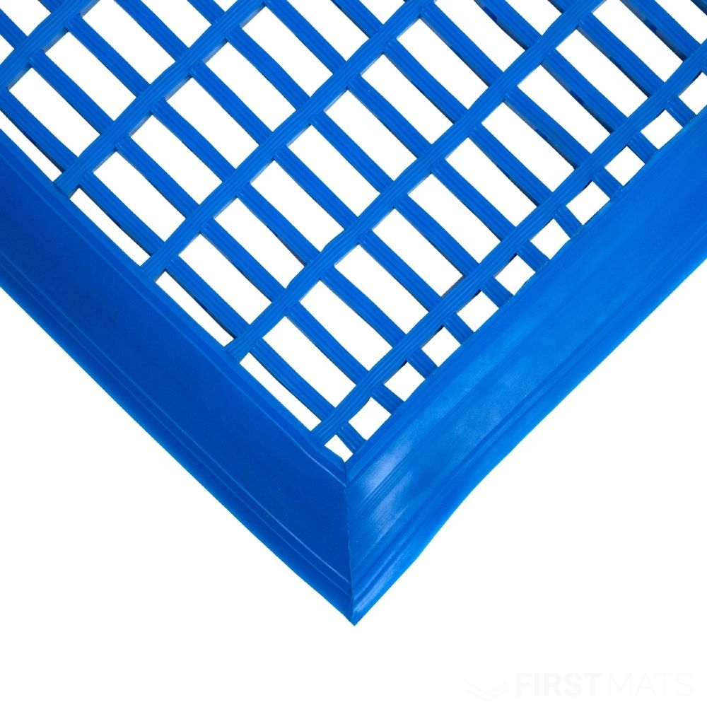 Bevelled edges provide a smooth transition from the poolside floor onto the mat, reducing trip risks in busy areas. Manufactured in the UK from flexible PVC, FlowMat combines durability with comfort underfoot. It is easy to clean, treated for hygiene, and rated highly for slip resistance and wear, ensuring long-lasting performance in professional pool environments.