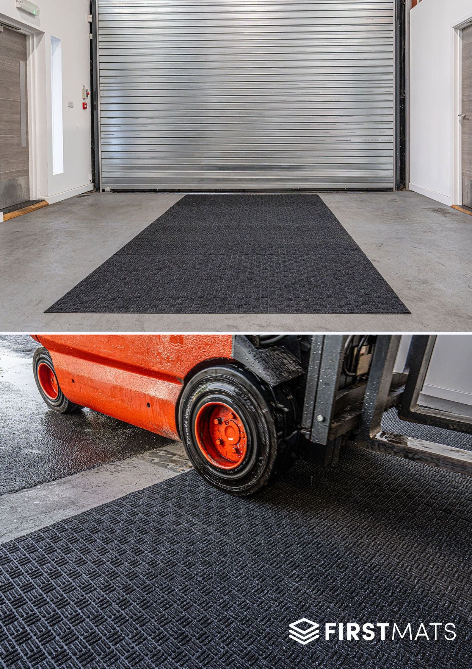 Rugged and reliable forklift mats that reduce slips, enhance cleanliness, and improve warehouse safety.