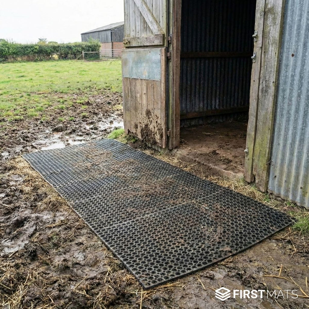 Ground-Stabiliser Mud Mat Tiles are designed to turn muddy, uneven, or heavily worn areas into safer, more practical spaces for both people and animals. Whether used around gateways, stables, feeding areas, or along farm walkways, these durable rubber mats provide immediate improvement by spreading weight and preventing the ground from breaking up underfoot.
