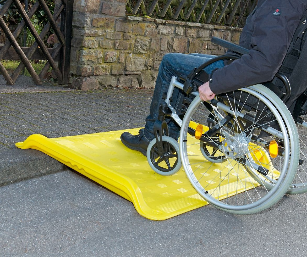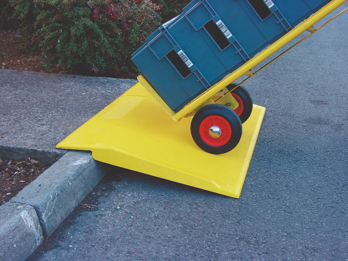 A reliable, lightweight kerb ramp designed for wheelchairs, trolleys, and heavy loads.