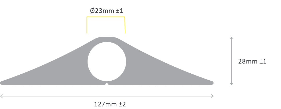 Our heavy-duty cable protectors are designed to safeguard your cables from constant wheeled traffic, including cars and forklifts. The oversized 23mm diameter channel can accommodate even the largest power cables, making it an essential tool for HSE-compliant cable and cord management in warehouses and beyond. Available in either 3m or 9m lengths, these protectors are rugged enough for both indoor and outdoor use. The pre-cut channel on the underside allows for easy installation, ensuring you never exceed fill capacity. Made from durable PVC with a smooth finish, these cable protectors are a reliable choice for maintaining safety and compliance in any industrial environment.