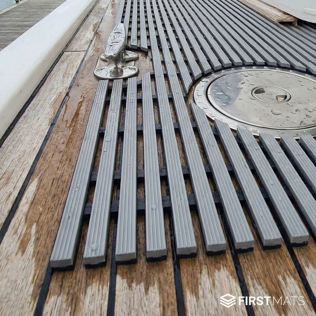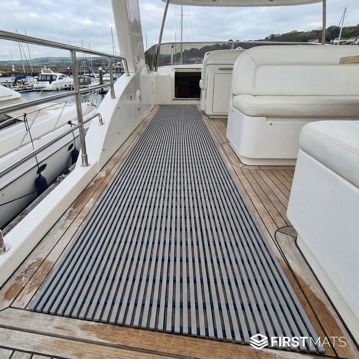 The raised duckboard profile allows water to flow freely underneath, keeping feet lifted above wet surfaces and improving grip when moving around the vessel. Available in multiple colours €” including grey, a highly sought-after option in the marine industry €” the marine duckboard matting is treated to resist bacterial and fungal growth and remains flexible enough to be rolled up for cleaning or storage.