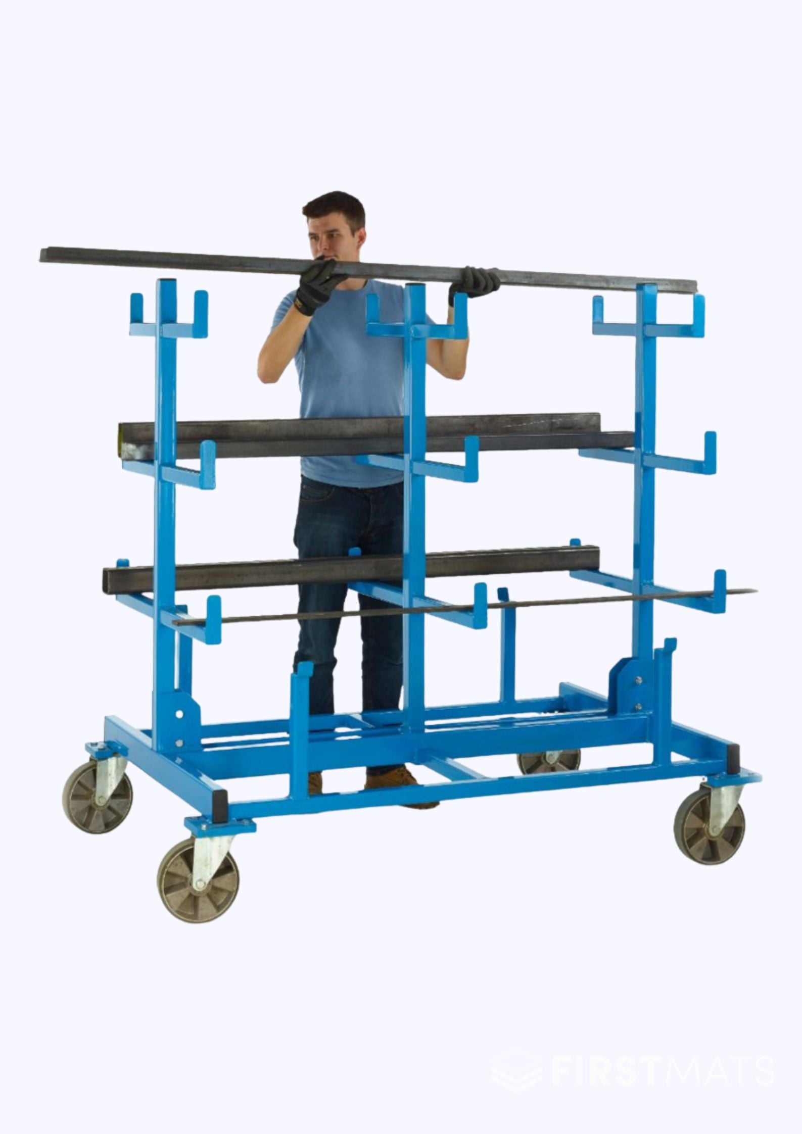 The Heavy Duty Mobile Bar Storage Racks combine strength with mobility, making it easy to store and transport long materials such as timber, pipes, and steel bars around your workplace. With a capacity of up to 2000kg and a robust three-tier layout, they’re built for heavy-duty use in warehouses, workshops, and construction environments.