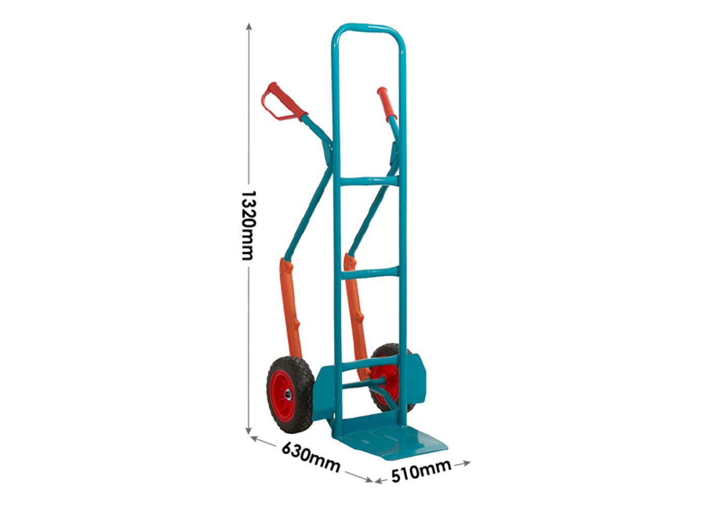 - Dimensions: With a size of 510mm (W) x 630mm (D) x 1320mm (H), this sack truck is compact enough for easy storage and navigation, yet spacious enough to handle substantial loads.