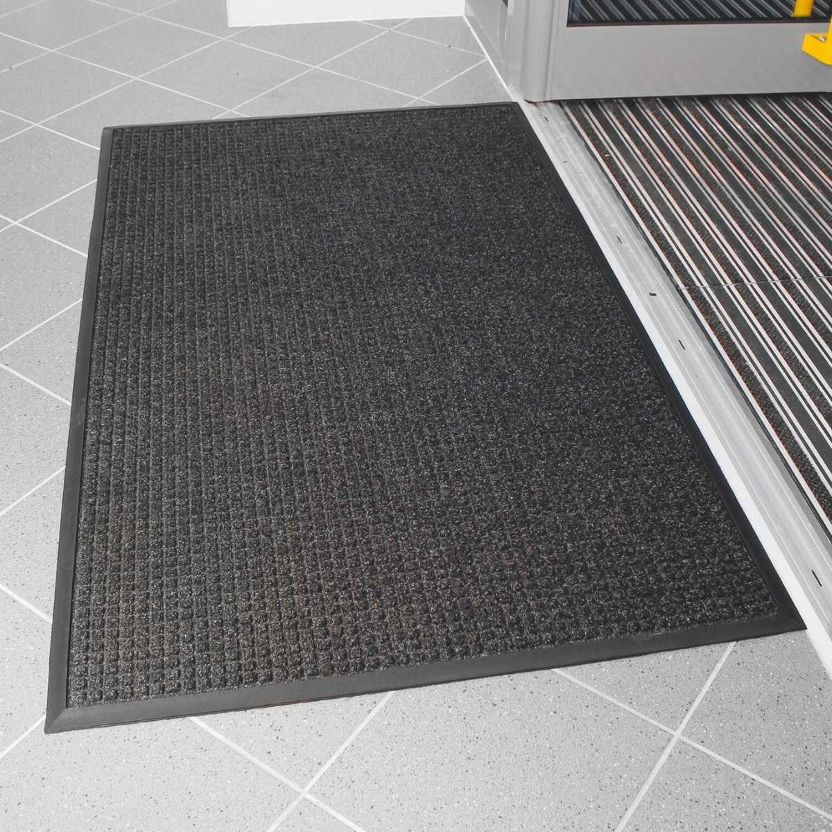 A tough, absorbent door mat designed to keep shop floors cleaner, drier, and safer for all customers.