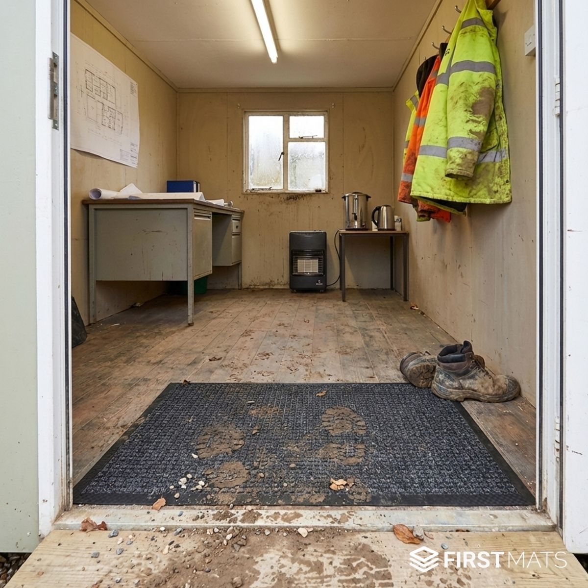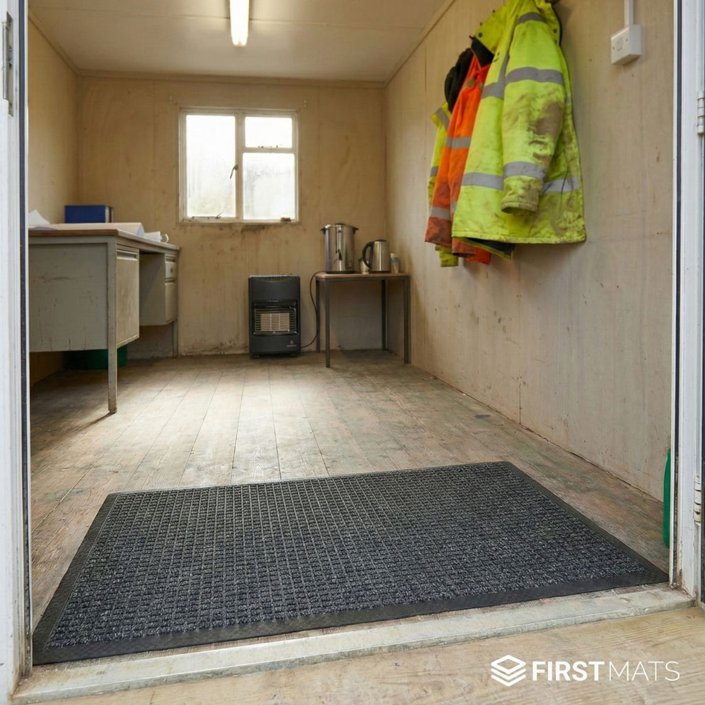 The slip-resistant rubber backing keeps the mat firmly in place on smooth cabin flooring, even during busy shifts. Durable, easy to clean, and available in practical sizes, it’s ideal for welfare units, office cabins, drying rooms, and other high-traffic site buildings that need reliable protection against the constant mess of construction work.