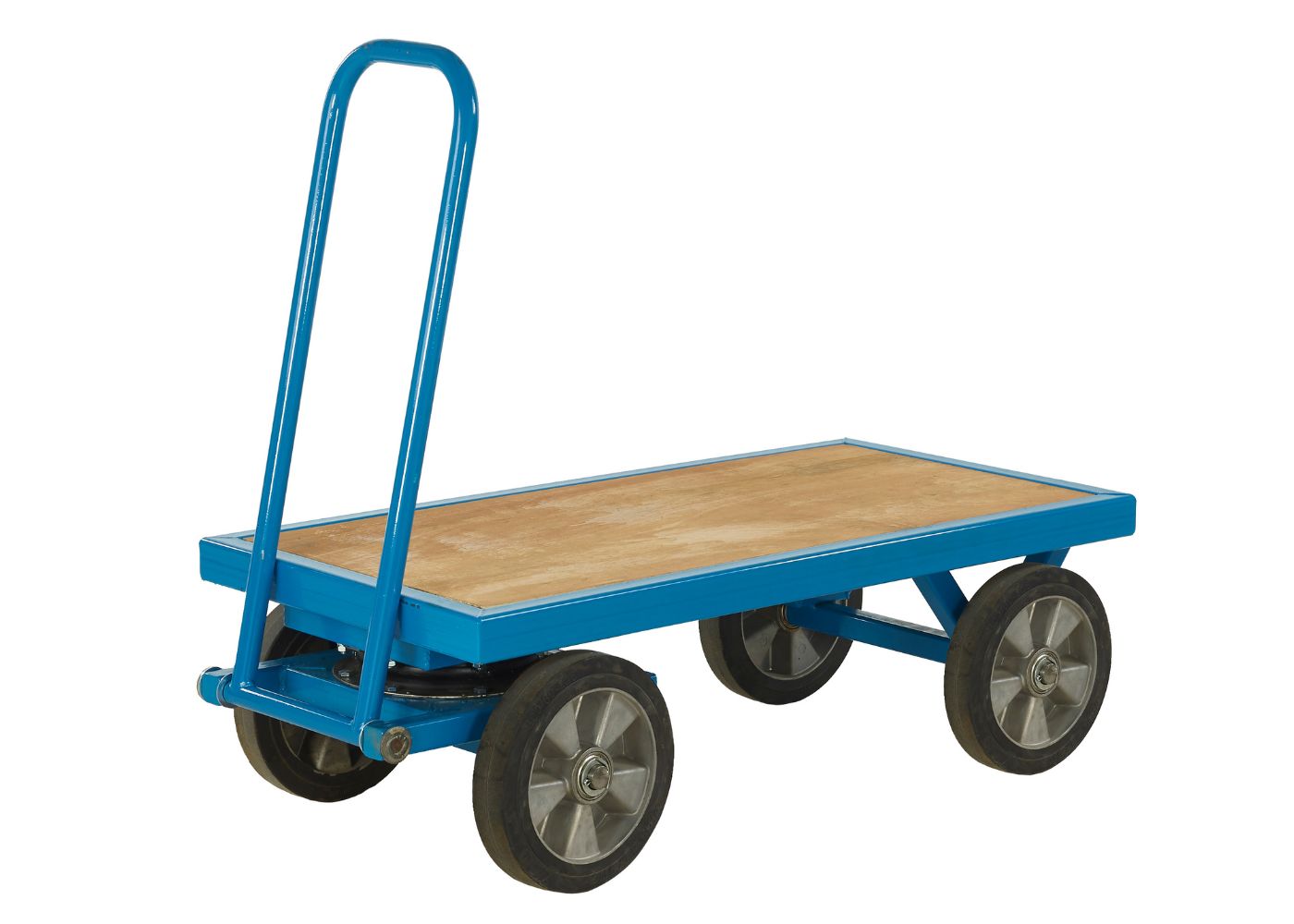 Perfect for warehouses, factories, and construction sites, this truck features a durable steel frame and plywood deck to withstand heavy loads. The ball-bearing turntable and 300mm wheels ensure smooth movement, while the ergonomic handle height enhances user comfort. Available in various platform sizes, it adapts to different workspace needs.