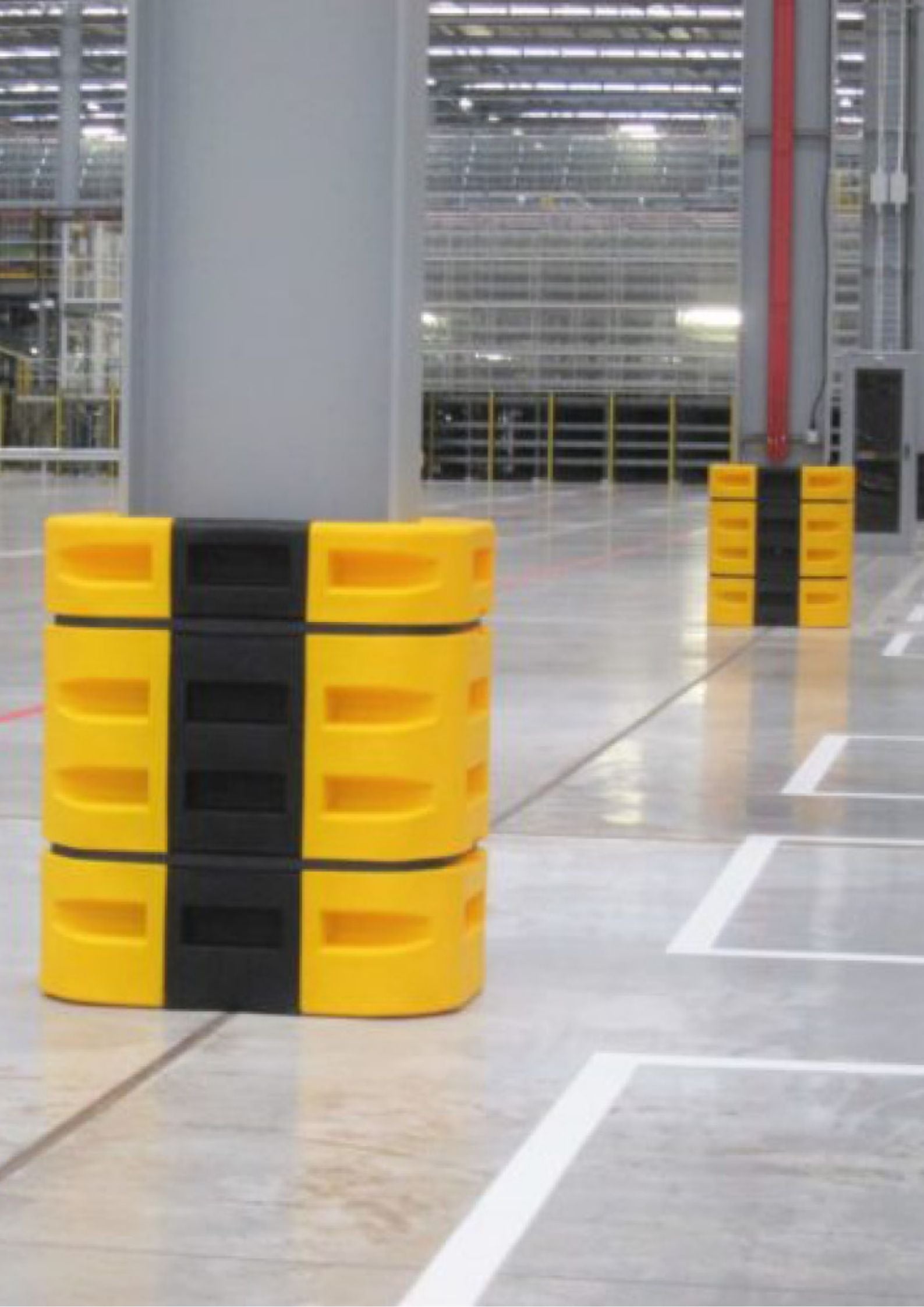 Impact-resistant polyethylene: Tough material protects columns from collisions with forklifts and vehicles.