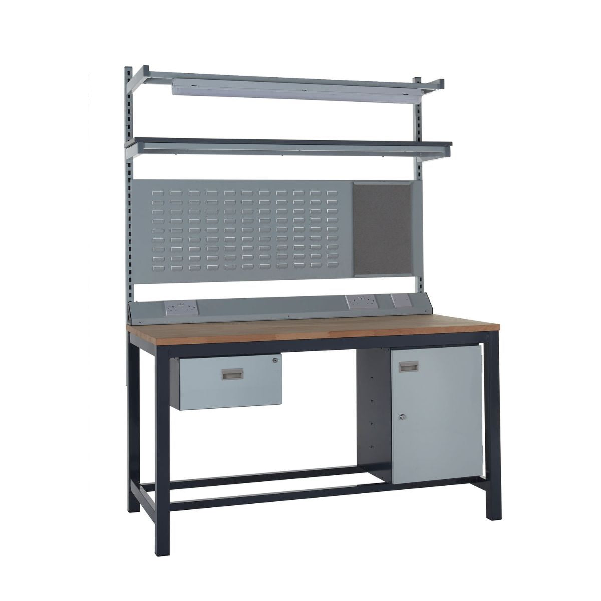 Heavy-Duty Workbench with Cupboard, Upper Shelf & LED Lighting
