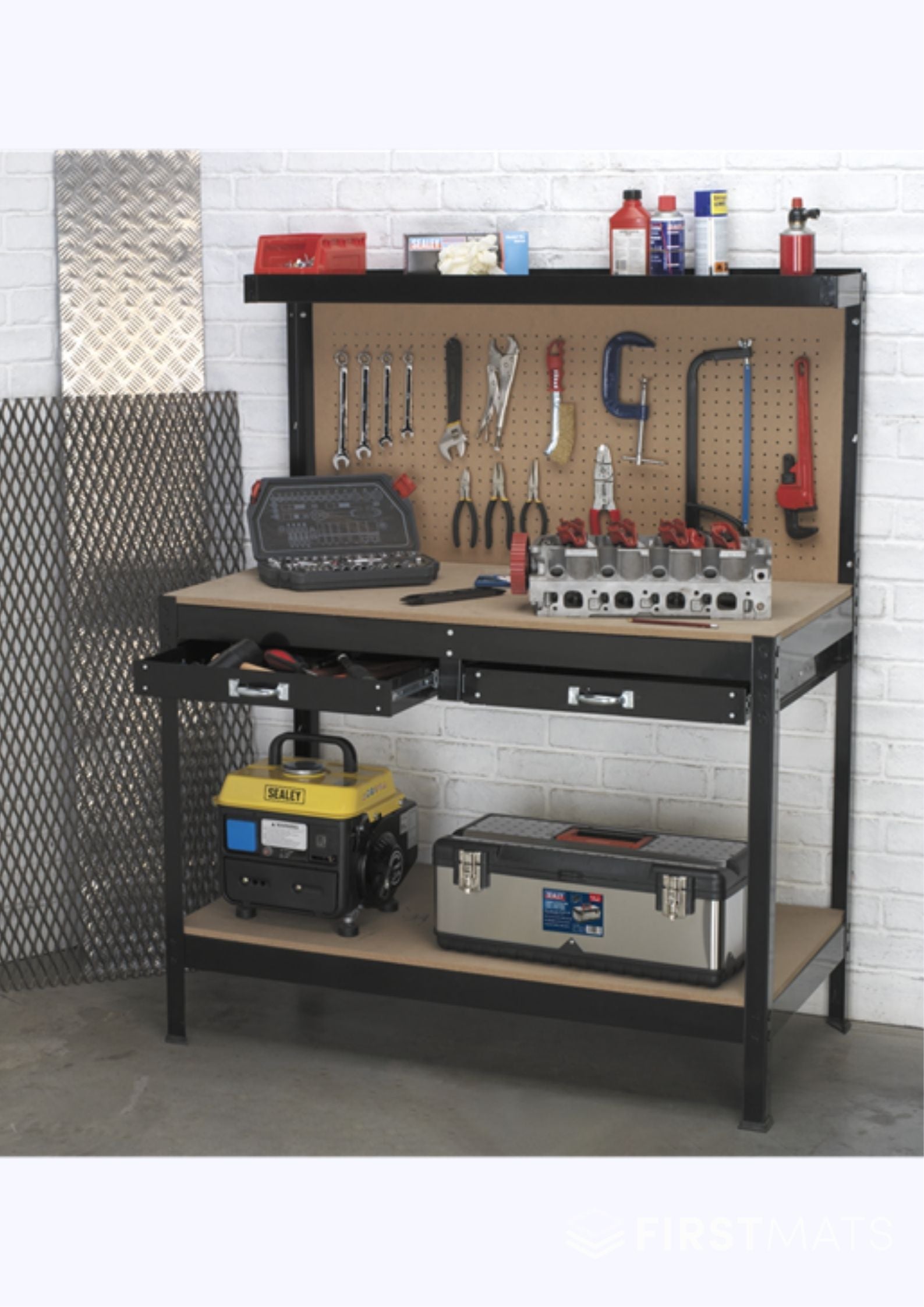 - Heavy Duty Workstation with Drawers and Pegboard: This robust workbench is the perfect companion for any workshop, offering ample storage and a sturdy workspace to maximise productivity.