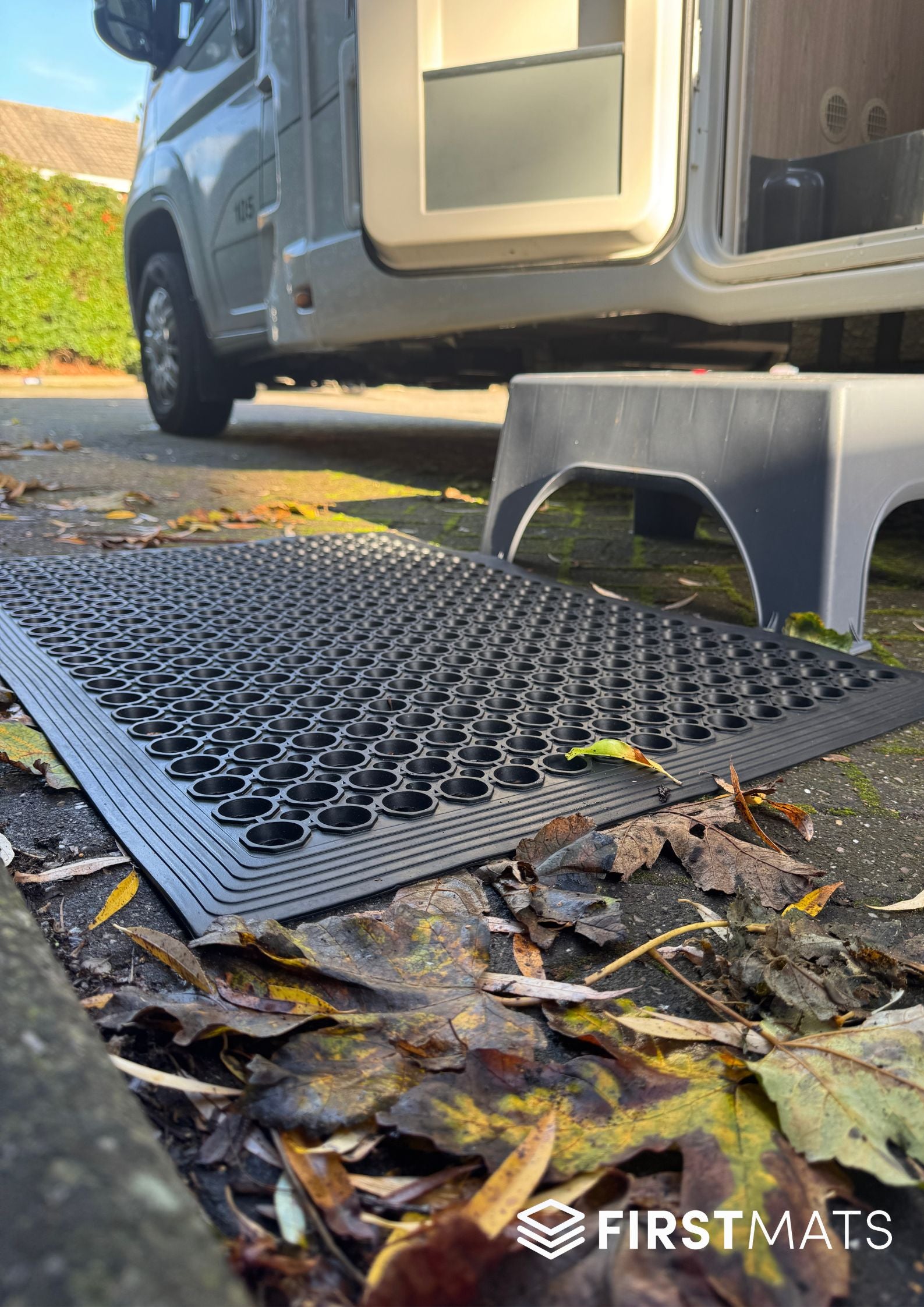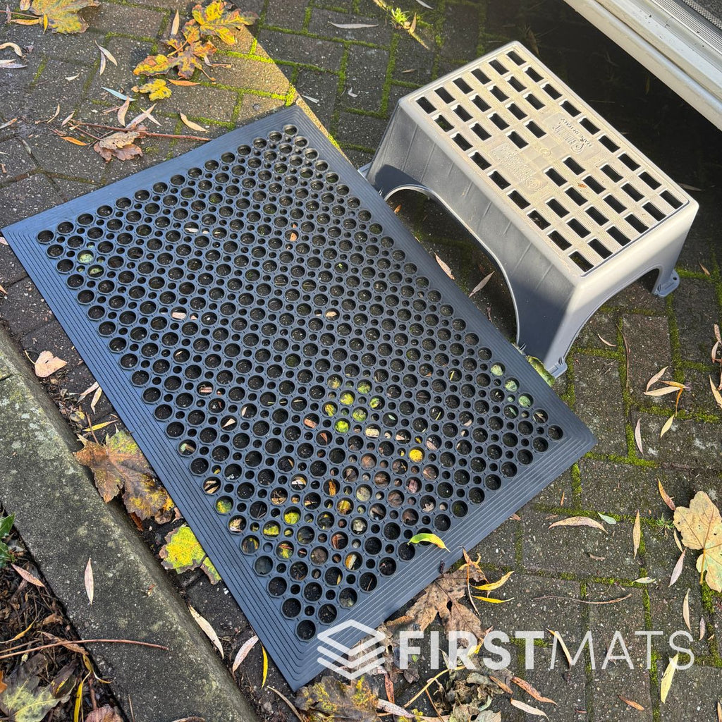 The Honeycomb Outdoor Rubber Caravan Mat is built for the realities of touring, including muddy pitches, wet grass, gravel paths, and shoes that pick up everything along the way. Its honeycomb-style holes scrape dirt, mud, and stones from footwear before you step inside, helping protect your caravan or motorhomes interior carpets. The open pattern also allows rainwater to drain quickly, preventing puddles from forming by the door.