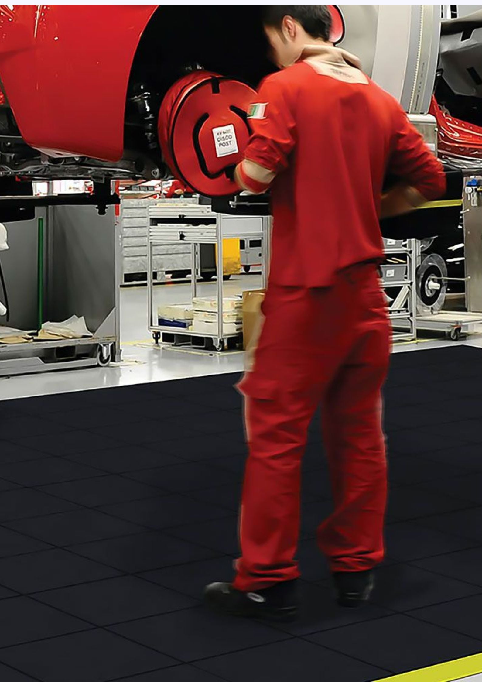 Heavy-duty 19 mm rubber tile: Provides long-lasting comfort and resilience under foot traffic, tools and workshop equipment.