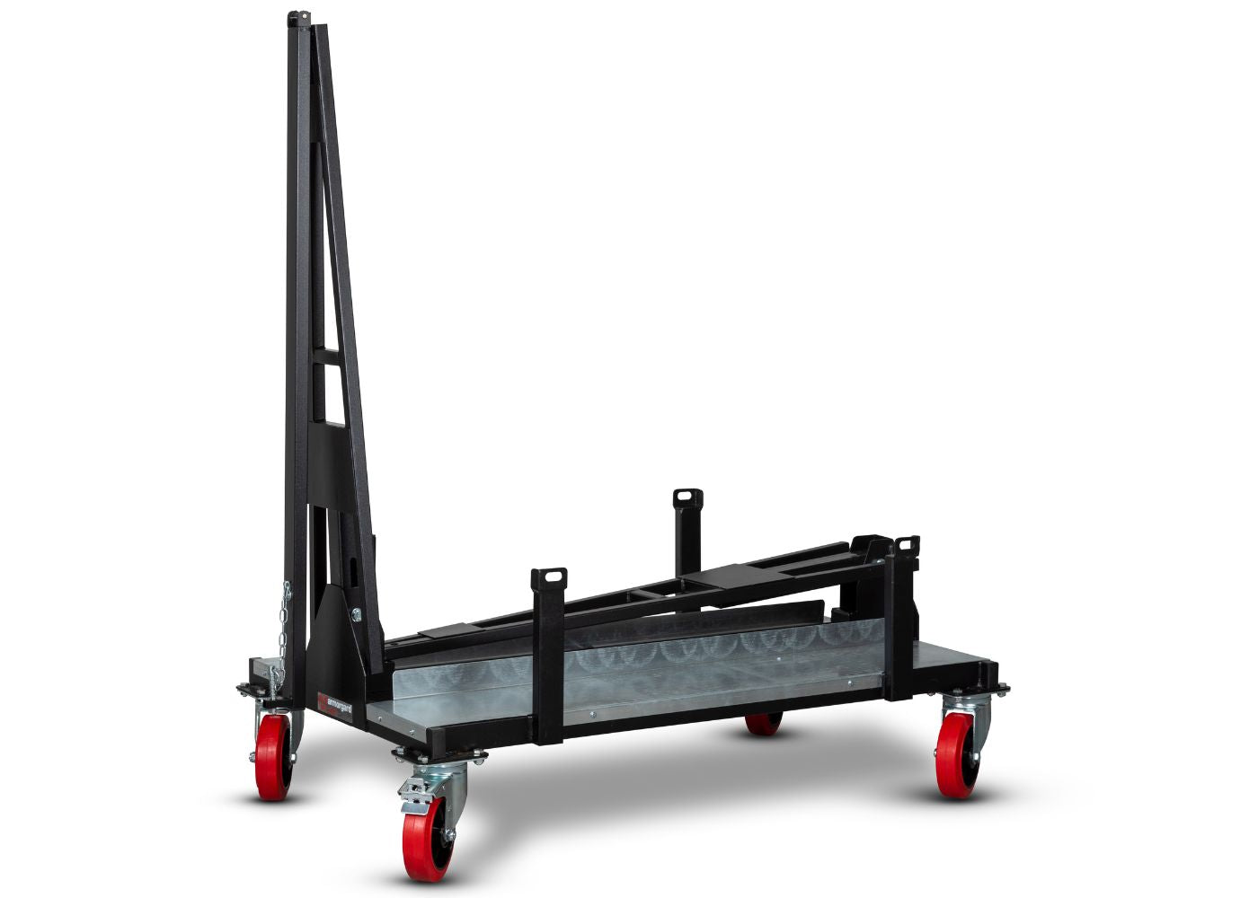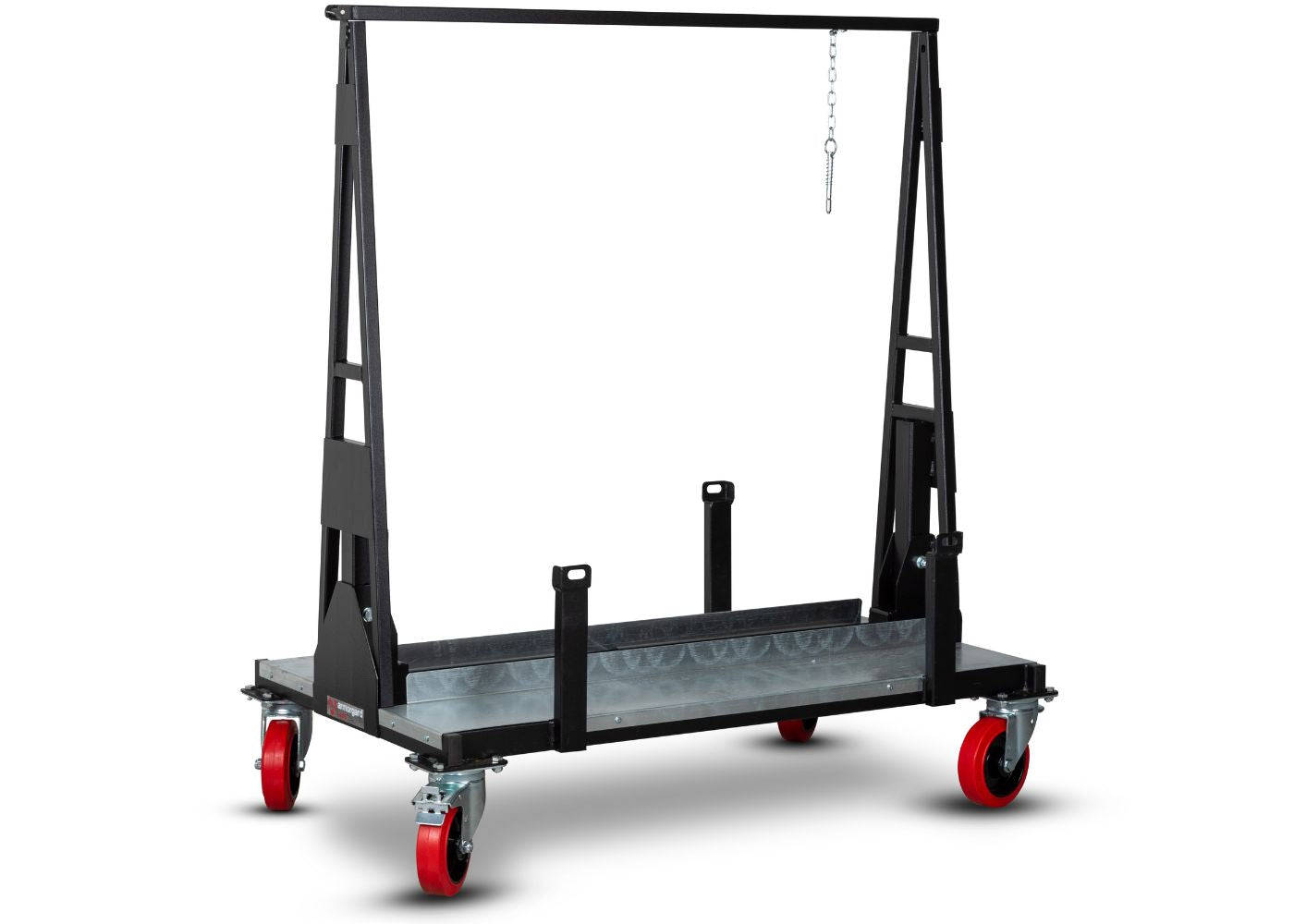 The trolley's design includes heavy-duty castors, two of which are braked, and safe working load plates. Its centre A-Frame design guarantees optimal weight distribution when loaded.