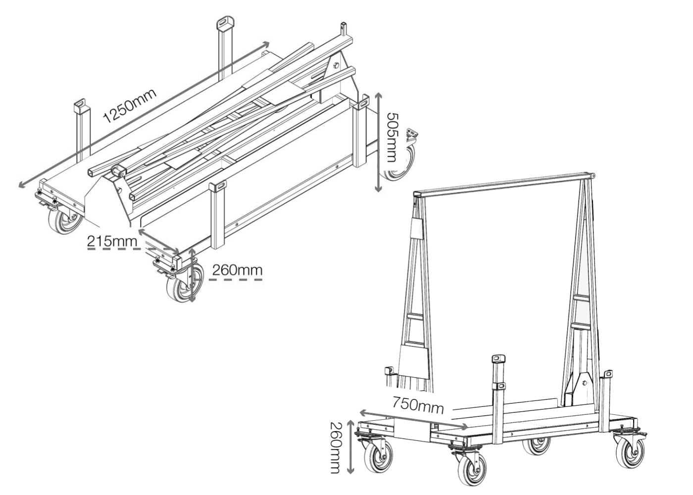 Move large sheets with ease and store the trolley efficiently when not in use.