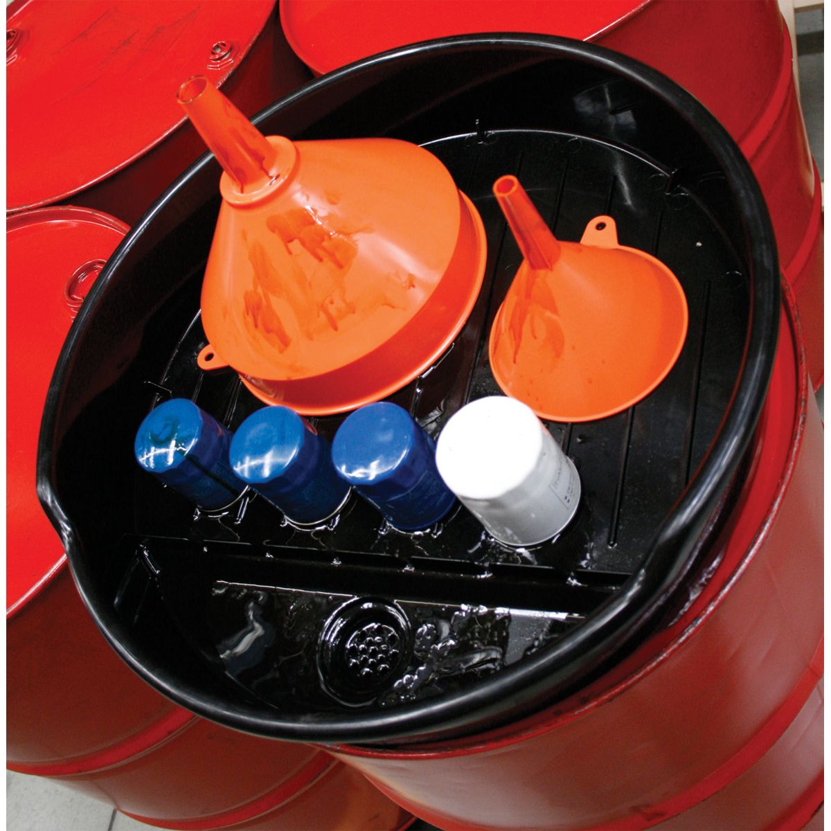 - Efficient Oil Draining: The pan's design allows for the effective draining of oil back into the drum, making it an ideal choice for small items such as oil filters and pouring cans.