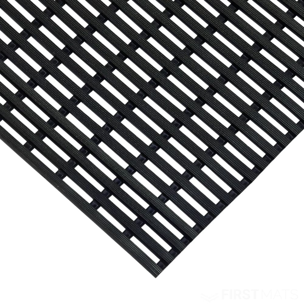 The raised duckboard profile allows water to drain away instantly, keeping walking surfaces drier, while the textured surface provides excellent slip resistance for bare feet. Its anti-bacterial and anti-fungal treatment ensures lasting cleanliness, while the chemical, oil, and grease resistance makes it suitable for a wide range of commercial environments. With excellent wear resistance and the option to order custom lengths, Duckboard Matting is the go-to choice for facilities that require reliable, long-lasting performance.